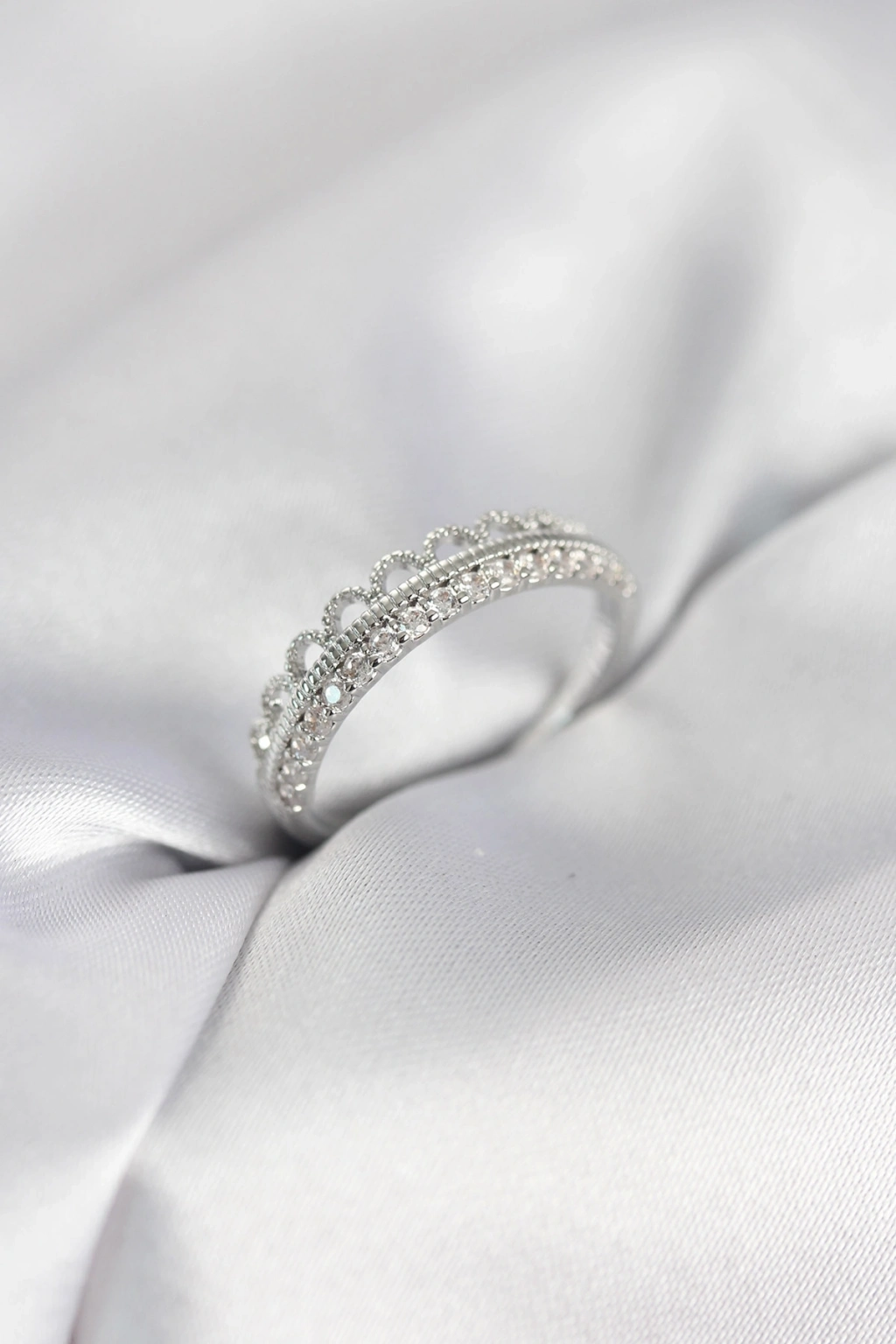 ® Motif Desenli Gümüş Renk Zirkon Taşlı Kadın Yüzük