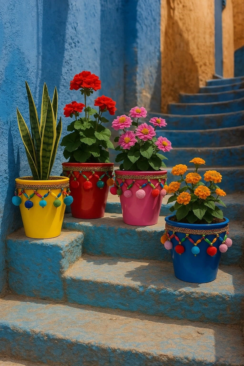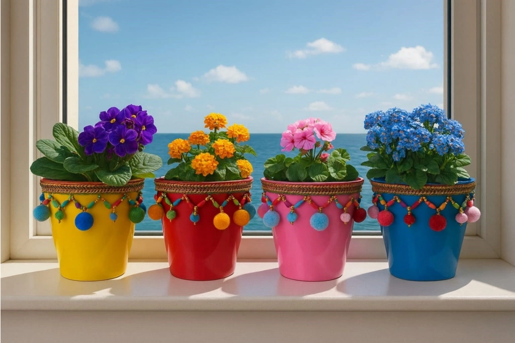 ® Dekoratif Saksı Akdeniz PEMBE Tekli