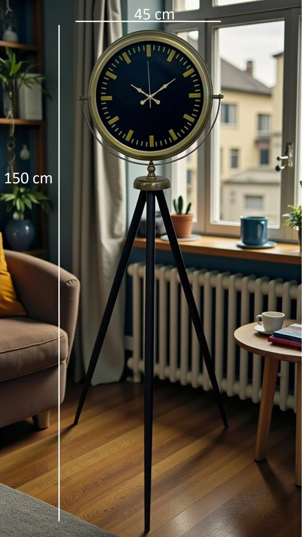 Eskitme Tripod Ayaklı Dekoratif Saat – 150 x 45 cm