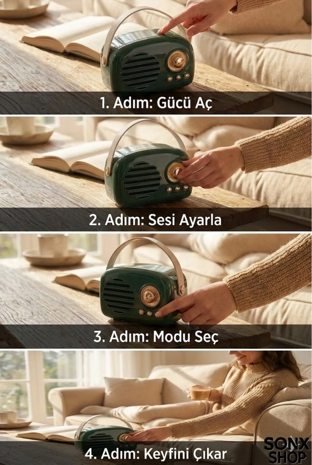 Nostaljik Retro Bluetooth hoparlör, hem estetik hem de fonksiyonel özellikleriyle günlük müzik deneyiminizi zenginleştirir. Taşınabilir yapısı sayesinde istediğiniz her yerde kullanabilir, kaliteli ses performansının tadını çıkarabilirsiniz.