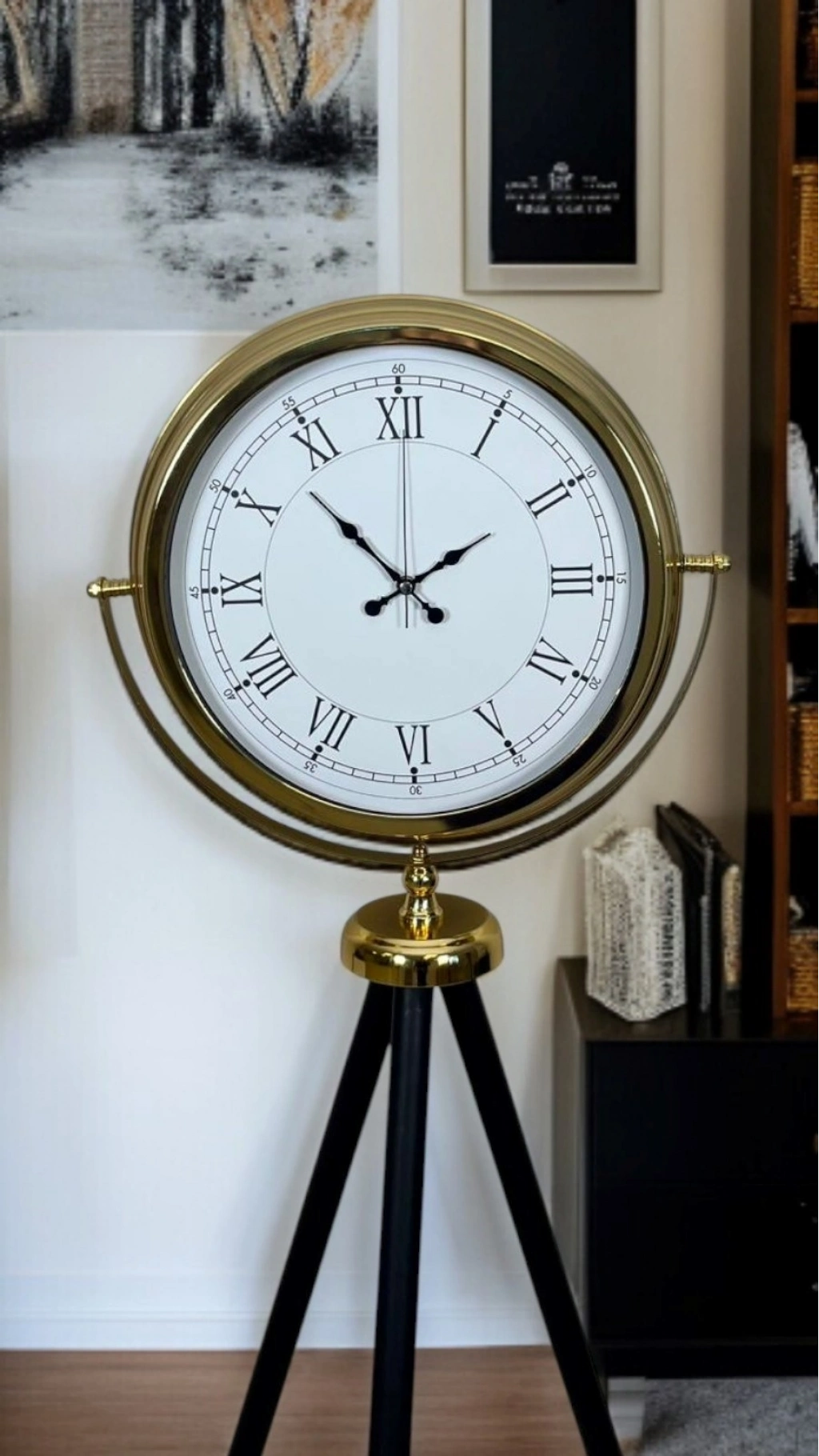 ?️ Gold Tripod Ayaklı Roma Rakamlı Saat – 150 × 45 cm