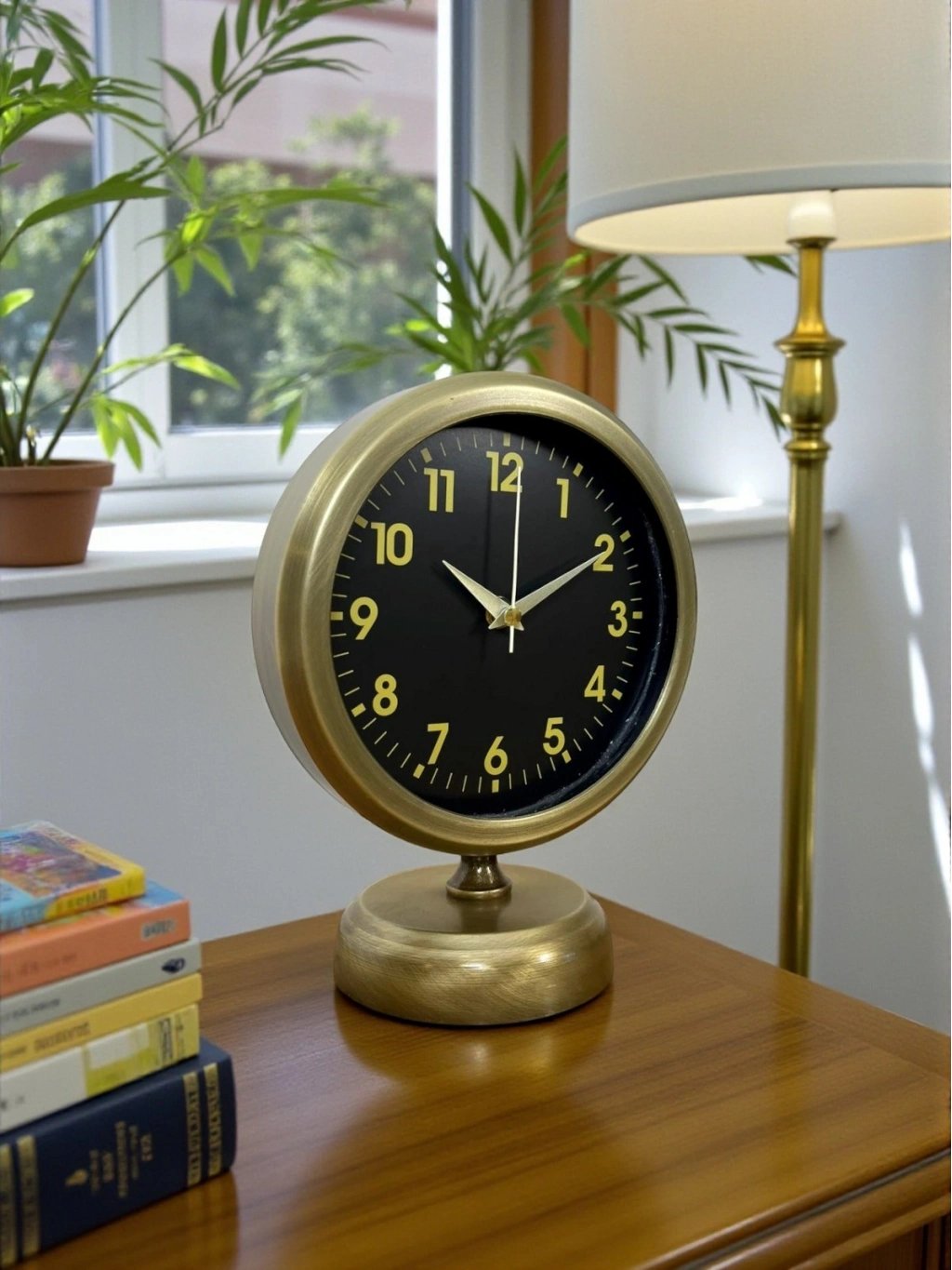 Klasik çizgileri modern detaylarla birleştiren bu eskitme gold masa saati, bulunduğu ortama sofistike bir hava katar. Siyah zemin üzerinde yer alan gold rakamlarıyla dikkat çeken tasarımı; salon, çalışma odası, ofis, konsol üstü ve vitrinler için kusursuz bir tamamlayıcıdır. 25 x 20 cm ölçüsü sayesinde hem yer kaplamaz hem de dekorasyonda güçlü bir duruş sergiler.