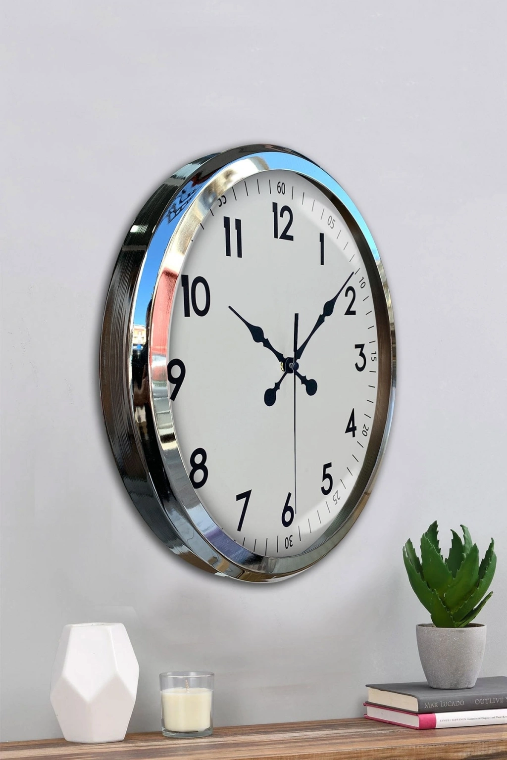 Krom çerçevenin şık parlaklığı, modern, minimalist, klasik veya lüks dekorasyon tarzlarının tümüne kolayca uyum sağlar. Ürün hafif yapısı sayesinde duvara monte etmek çok kolaydır. 52 cm genişliği ile büyük duvar saatleri kategorisinde yer alır ve bulunduğu alana premium bir görünüm kazandırır.