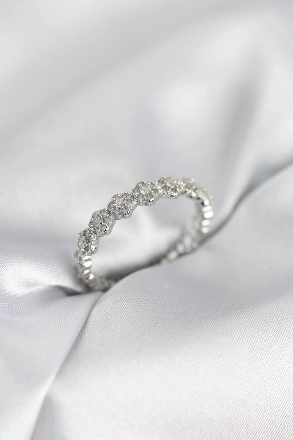 ® Sıralı Çiçek Model Gümüş Renk Zirkon Taşlı Kadın Yüzük