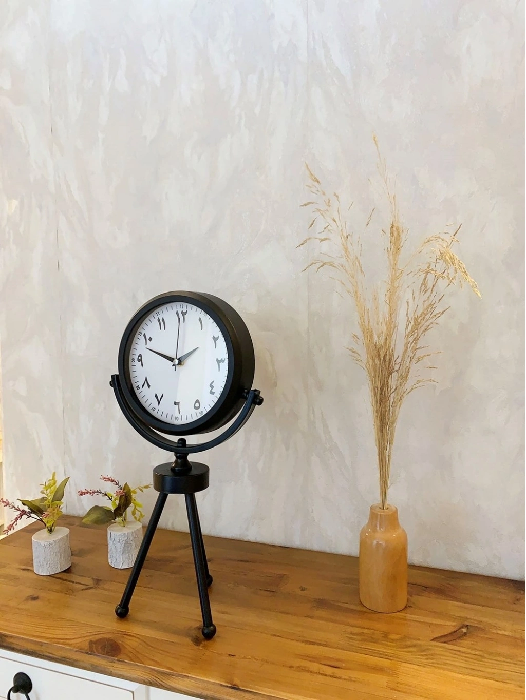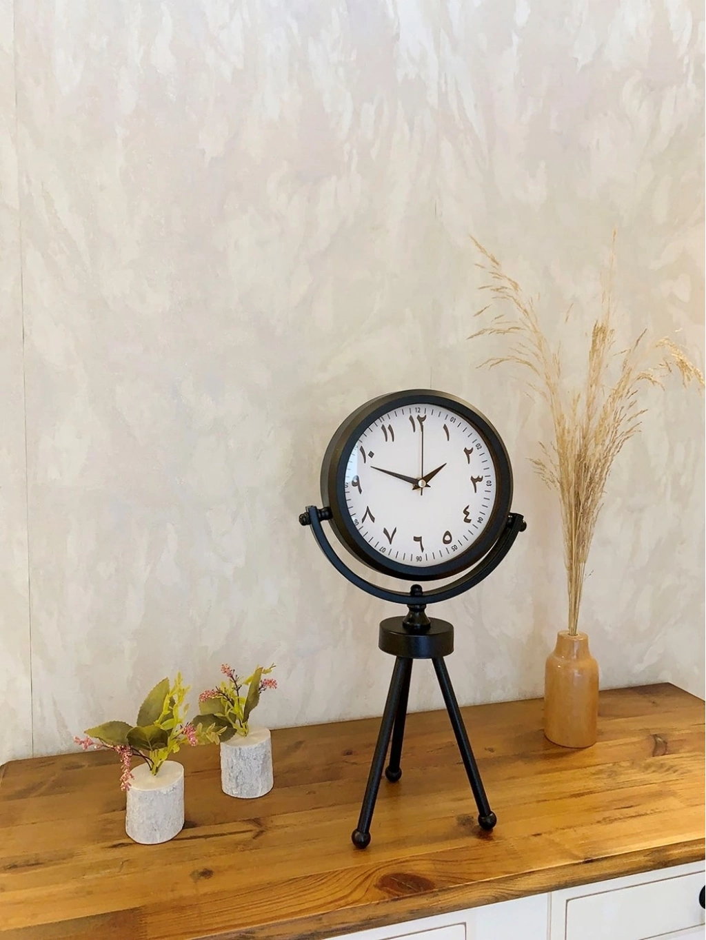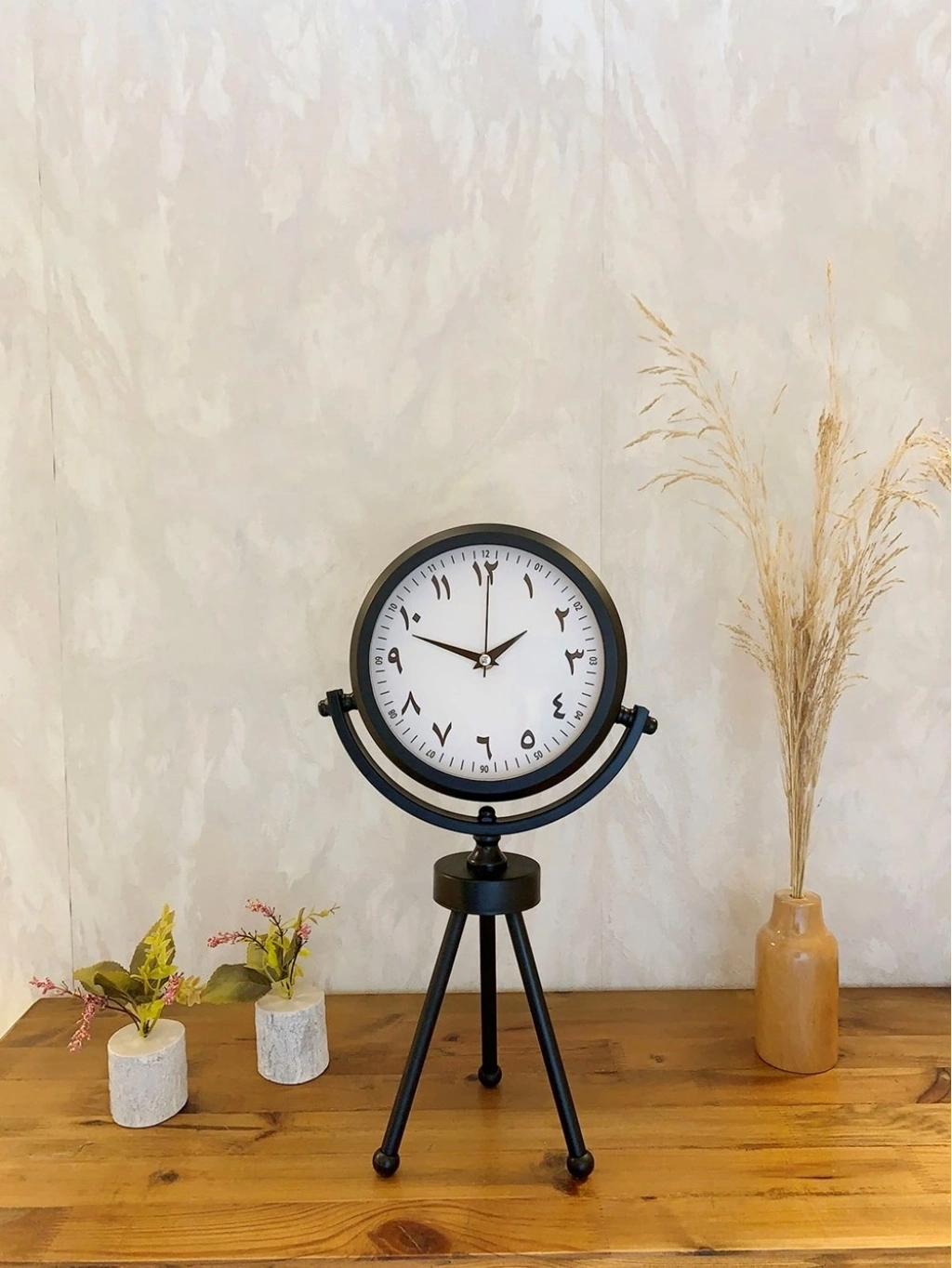 ® Siyah Metal Mini Tripod Farsça Masa Saati 45×26 cm
