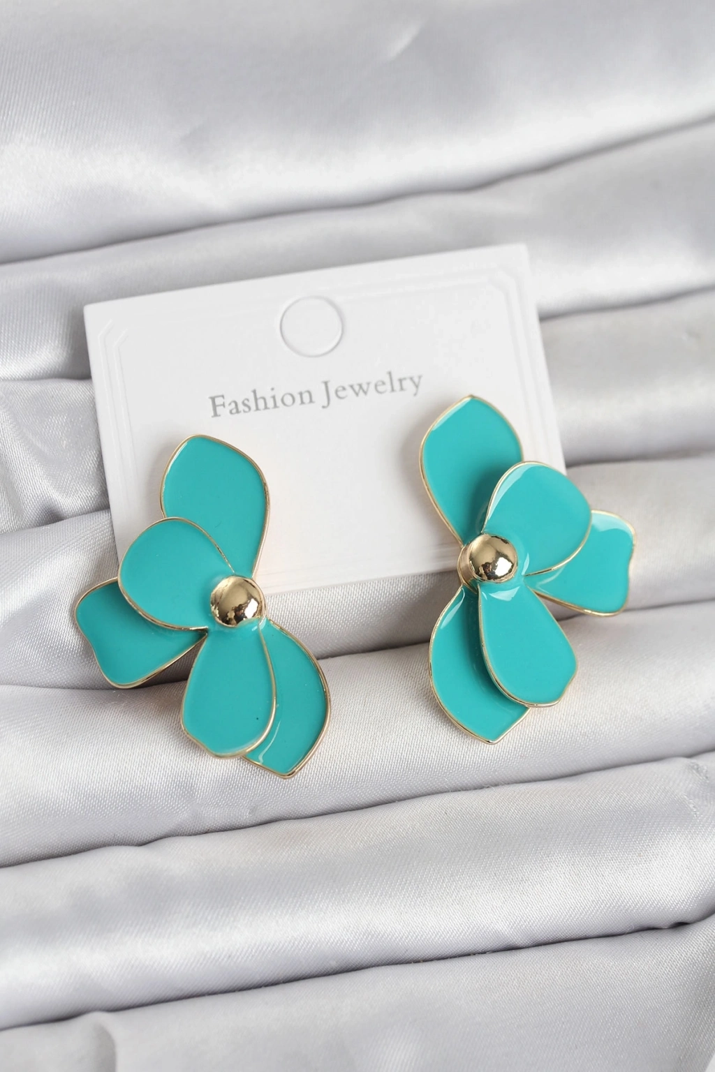 Turkuaz Mineli Lotus Model Pirinç Kadın Küpe