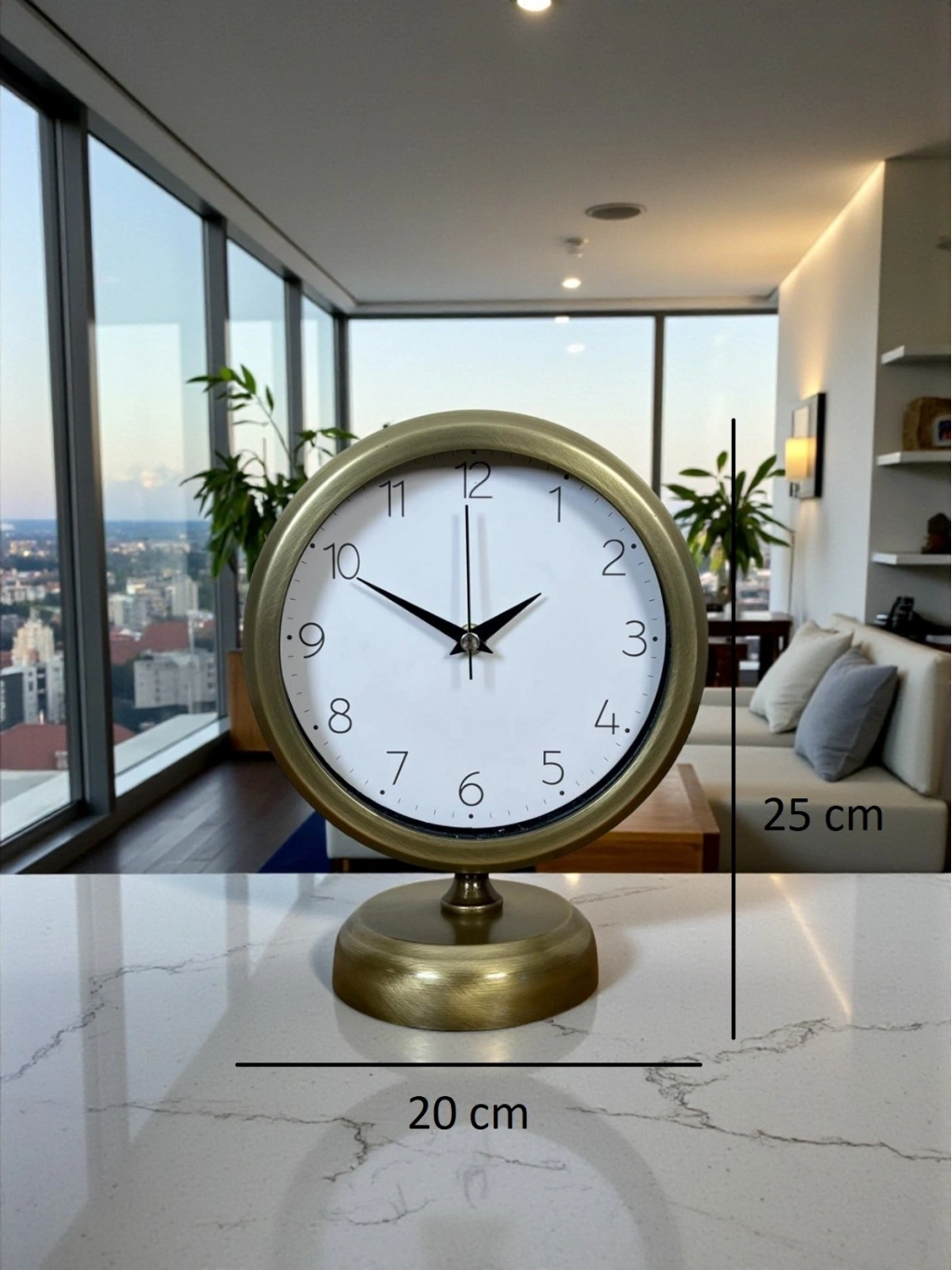 Zamansız tasarımı ve eskitme metal dokusuyla öne çıkan bu vintage masa saati, bulunduğu ortama klasik bir şıklık ve karakter katar. Hem dekoratif hem de işlevsel yapısıyla; salon, çalışma masası, ofis, kitaplık, konsol veya vitrin üzerinde estetik bir tamamlayıcı olarak kullanılabilir.