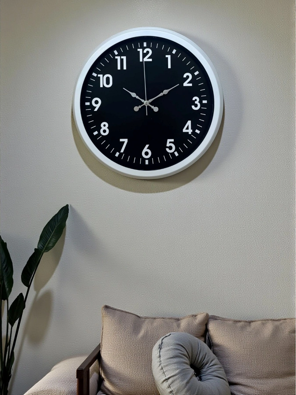 Modern tasarımı ve güçlü kontrast yapısıyla dikkat çeken bu duvar saati, beyaz metal kasası ve siyah kadranı sayesinde bulunduğu ortama sofistike ve şık bir hava katar. Net rakam tasarımı, yüksek okunabilirlik sunarken; klasik ve modern çizgileri bir arada barındırmasıyla hem ev hem de ofis kullanımı için ideal bir üründür.