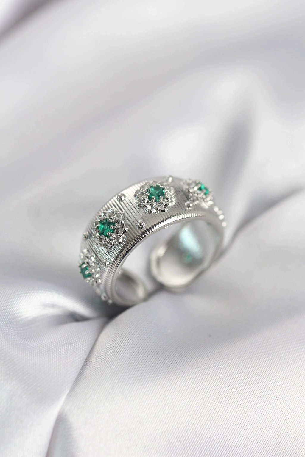® Yeşil Zirkon Taşlı Gümüş Renk Vintage Kadın Yüzük