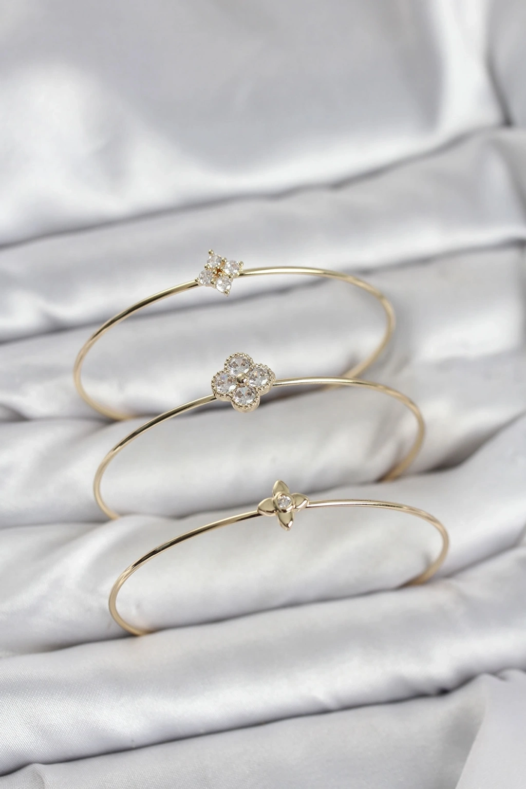 ® Zirkon Taşlı Gold Renk Yonca Tasarım 3'lü Kadın Bileklik Kombini