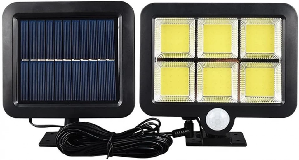 120 COB LED SOLAR PANELLİ 3 MODLU DUVAR LAMBASIÜrün Özellikleri120 COB LED'li solar panelli duvar lambası, beyaz ışık rengi ile güçlü aydınlatma sağlar. 4.7 metre uzunluğunda kabloya sahiptir ve 3 farklı mod seçeneği sunar. Bu lamba, dış mekanlarda güvenlik ve dekorasyon amacıyla kullanılabilir. Güneş enerjisi ile çalışarak enerji tasarrufu sağlar ve pil gerektirmez. Solar paneli sayesinde gün boyunca şarj olur ve gece boyunca aydınlatma yapar. Bahçelerde, avlularda, duvar kenarlarında ve giriş alanlarında kullanıma uygundur.Paket İçeriği1 Adet 120 COB LED Solar Panelli 3 Modlu Duvar Lambası