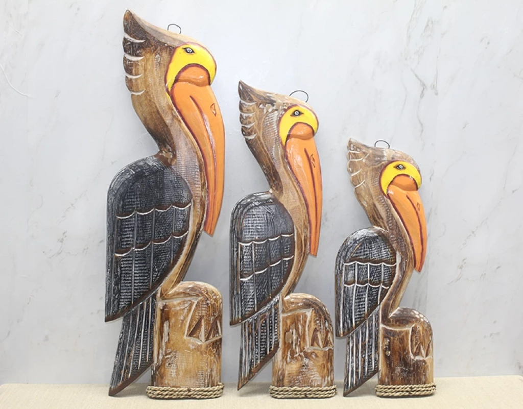 AHŞAP 3'LÜ PELİKAN SETİÜrün ÖzellikleriAhşap 3'lü Pelikan Seti, 40-50-60 cm boyutlarında üçlü dekoratif setten oluşmaktadır. Her bir pelikan, özenle işlenmiş ahşap malzeme ile üretilmiş olup, doğal dokusu ve zarif tasarımıyla ev veya ofis dekorasyonunuza şıklık katacak bir üründür. Setin her bir parçası, doğal renkleriyle birlikte pelikan figürlerini vurgular ve dekoratif amaçla mükemmel bir seçenek sunar.Paket İçeriği1 Adet Ahşap 3'lü Pelikan Seti