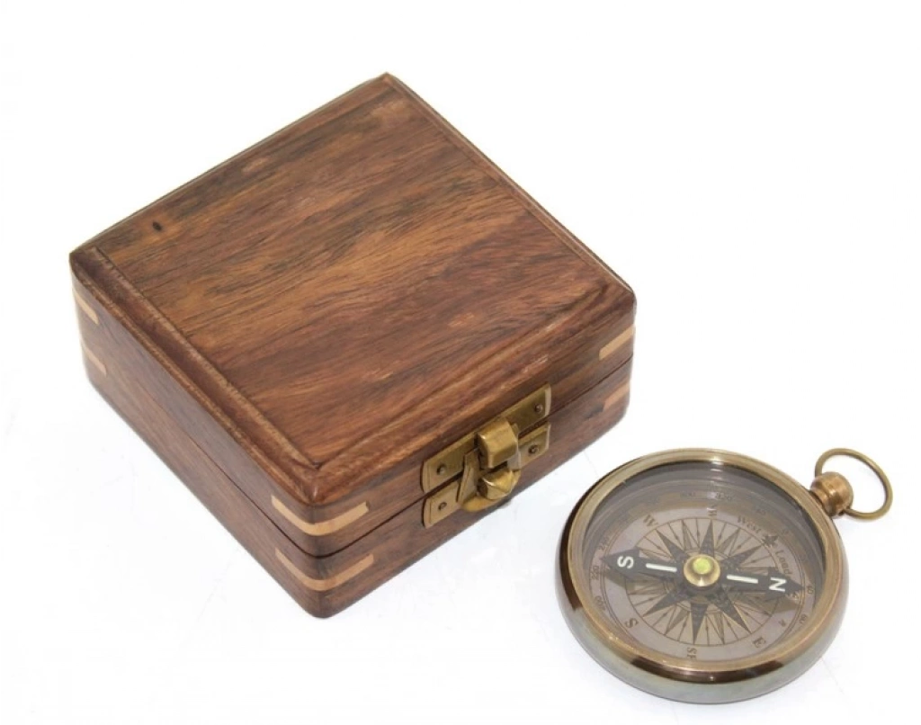 Ahşap Kutulu Pirinç Pusula Model 1