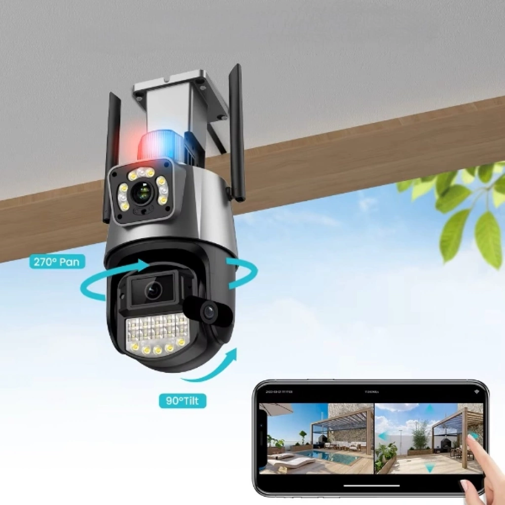 Çakarlı Çift Lensli Dış Mekan Güvenlik Kamerası