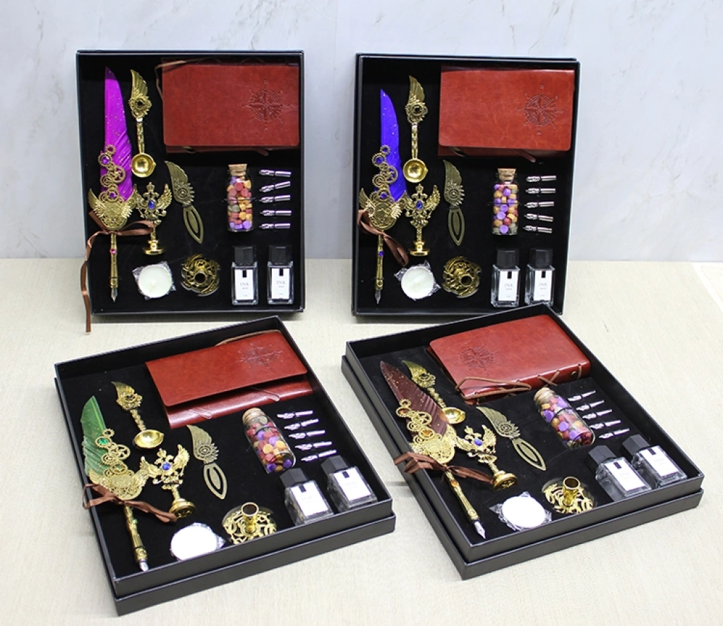 • DERİ DEFTERLİ DİVİT HOKKA VE MÜHÜR SETİ MODEL 2Ürün ÖzellikleriDeri Defterli Divit Hokka ve Mühür Seti Model 2, nostaljik yazım deneyimini zengin bir içerikle birleştiren özel bir kaligrafi ve mühürleme setidir. 30x25 cm boyutundaki şık hediye kutusu içerisinde yer alan deri kapaklı defter, klasik divit kalem, farklı uç alternatifleri, hokka mürekkebi, balmumu ve mühür aparatı; hem estetik hem de fonksiyonel kullanım için özenle hazırlanmıştır. Deri defter, özel yazılar, günlük notlar ve hat sanatı çalışma
