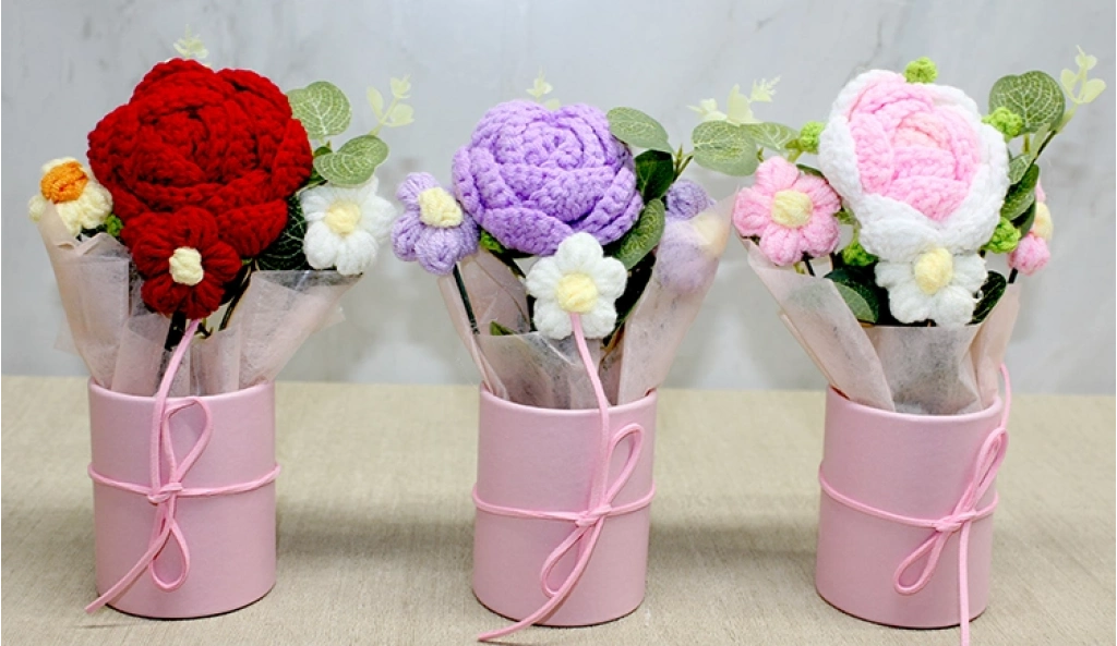 EL ÖRGÜSÜ SAKSIDA GÜL BUKETİÜrün ÖzellikleriEl Örgüsü Saksıda Gül Buketi, el emeği ile hazırlanmış dekoratif ve zarif bir masaüstü çiçek aranjmanıdır. 18x7 cm boyutundaki kompakt yapısı sayesinde çalışma masalarında, komodinlerde, vitrinlerde ve hediye sunumlarında şık bir tamamlayıcı olarak kullanılabilir. Örgü gül ve küçük çiçek detayları ürüne sıcak, yumuşak ve doğal bir görünüm kazandırırken, pembe tonlardaki dekoratif saksı ve kurdele detayı ürünü hediye edilmeye hazır sevimli bir aranjmana dönüştürür. El işçiliğiyle üretildiği için her bir buket kendine özgüdür ve el yapımı dokusu sayesinde bulunduğu ortama estetik bir hava katar. Renk seçimi yapılamaz; görseldeki renklerden biri karışık olarak gönderilir. Hem dekoratif amaçlı kullanım hem de anlamlı bir hediye seçeneği olarak idealdir.Paket İçeriği1 adet El Örgüsü Saksıda Gül Buketi