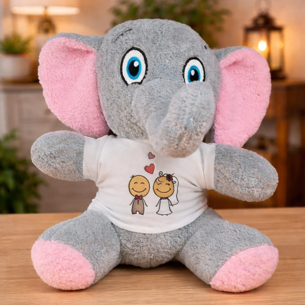Gelin Damat Tasarım Tişörtlü Sevimli Peluş Fil