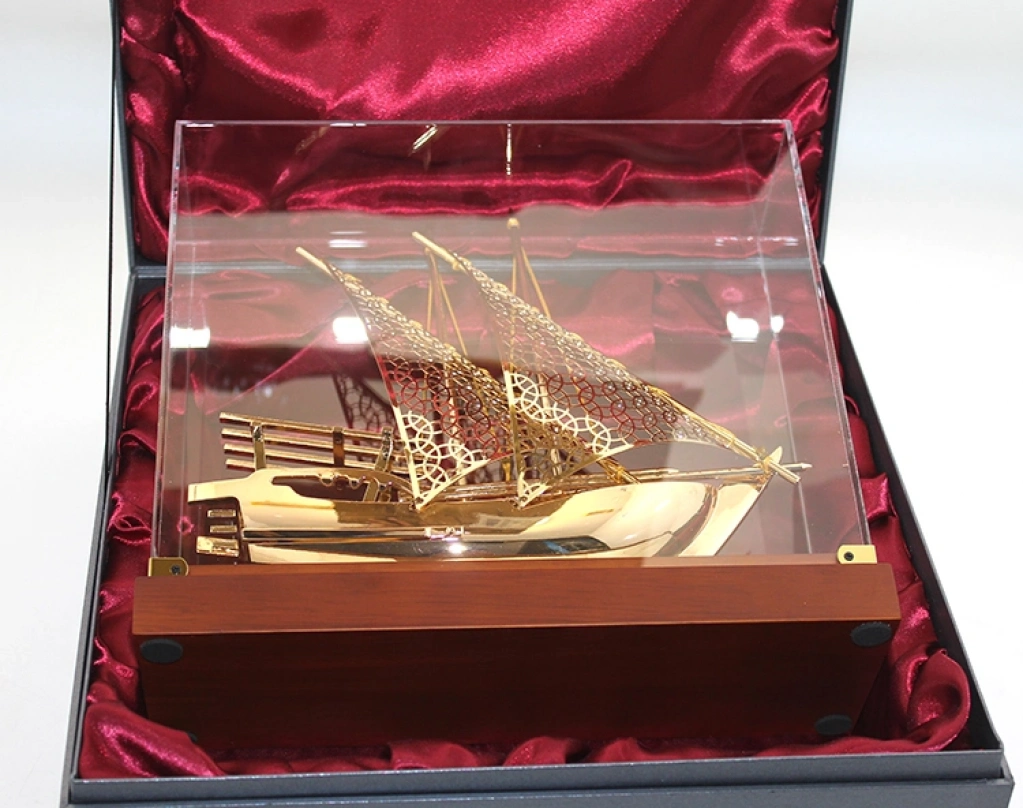 KUTULU PİRİNÇ GEMİ BÜYÜK BOYÜrün ÖzellikleriKutulu pirinç gemi modeli, ince işçilikle hazırlanmış dekoratif bir sergimiz parçasıdır. Pirinçten üretilmiş sağlam gövdesi ve detaylı yelken tasarımıyla hem deniz tutkunlarının hem de sergimiz meraklılarının beğenisini kazanır. 29x26 cm ölçüleriyle vitrin, masa ya da raflarda şık bir sergileme imkânı sunar. Özel kutusu sayesinde tozdan korunarak uzun yıllar boyunca estetik görünümünü muhafaza eder. Denizcilik temalı dekorasyonlarda zarif bir tamamlayıcı obje olarak öne çıkar.Paket İçeriği1 adet Kutulu Pirinç Gemi Büyük Boy