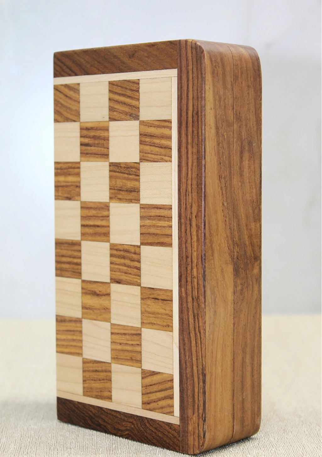 Özel Vernikli Mıknatıs Taşlı Ahşap Katlanabilir Kutulu Satranç Oyunu 12.5 Cm