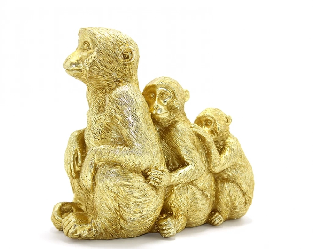 POLYESTER 3 MAYMUN FİGÜRÜÜrün ÖzellikleriPolyester 3 Maymun figürü, altın renkli şık tasarımıyla dekorasyonunuza anlamlı ve estetik bir hava katar. Dayanıklı polyester malzemeden üretilmiş olup, uzun ömürlü ve sağlam bir yapıya sahiptir. Üzerindeki ince detaylar, figüre gerçekçi bir görünüm kazandırırken, "Görmedim, duymadım, bilmiyorum" felsefesini yansıtan tasarımıyla dikkat çeker. Ev, ofis, otel veya vitrin dekorasyonunda kullanılabilecek sanatsal ve dekoratif bir objedir.Paket İçeriği1 adet Polyester 3 Maymun Figürü