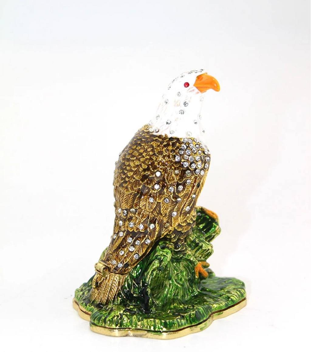 SWAROVSKİ TAŞLI TEKLİ KARTALÜrün ÖzellikleriSwarovski taşlarıyla süslenmiş zarif bir kartal figürü olan bu dekoratif obje, 10x6 cm boyutundadır. Altın renkli detayları ve üzerindeki taşlar, estetik bir görünüm sunar. Hem şık hem de zarif olan bu kartal figürü, evde veya ofiste dekorasyon amacıyla kullanılabilir. Hem hediyelik hem de sergimizluk olarak idealdir.Paket İçeriği1 Adet Swarovski Taşlı Tekli Kartal