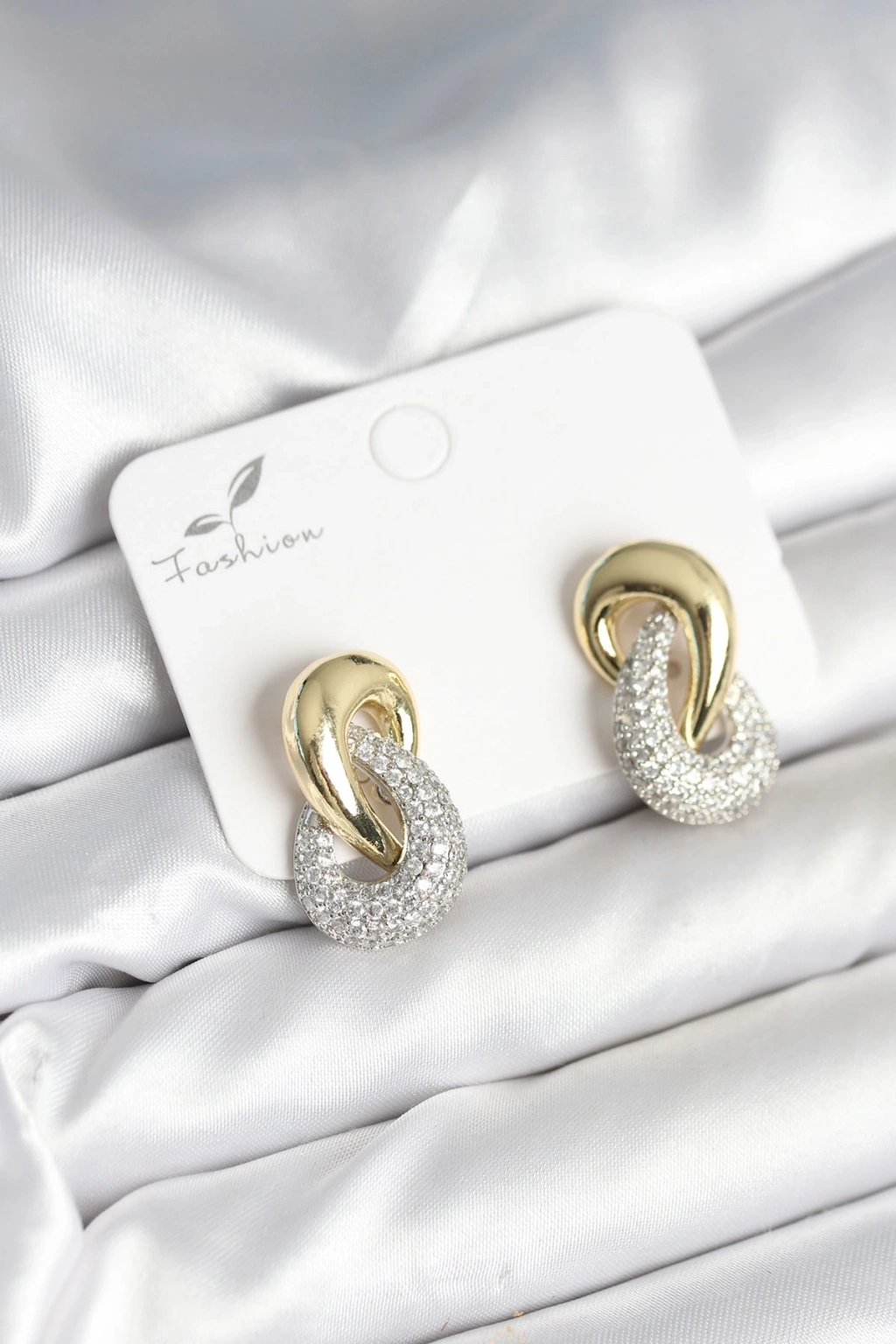Sarmal Model Gold Gümüş Renk Pirinç Kadın Küpe
