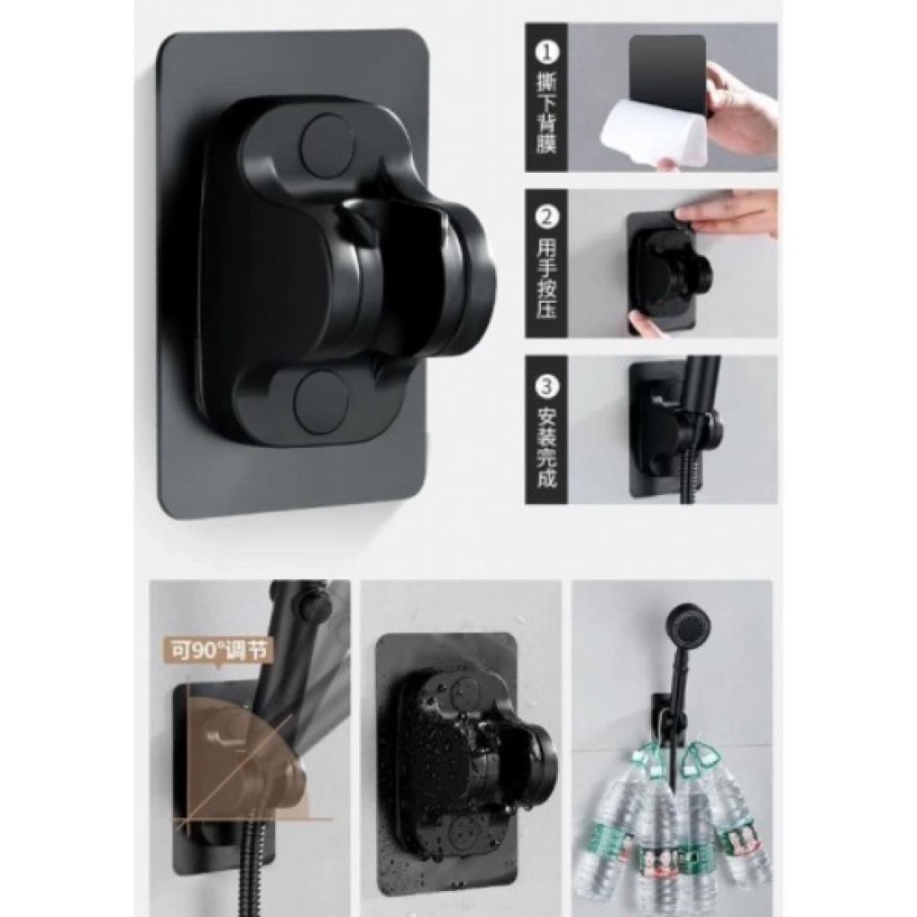 Yapışkanlı Duş Başlığı Tutucu Ayarlı Siyah