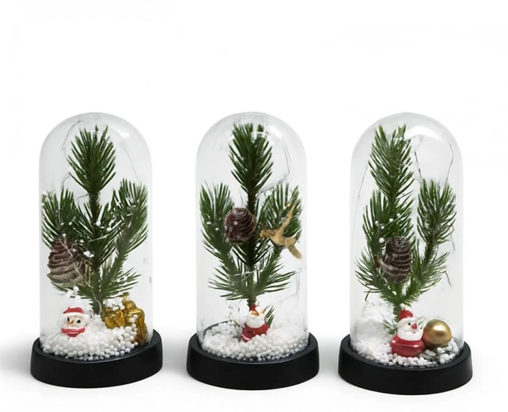 Yılbaşı Temalı Işıklı Dekoratif Cam Fanus - Model 9