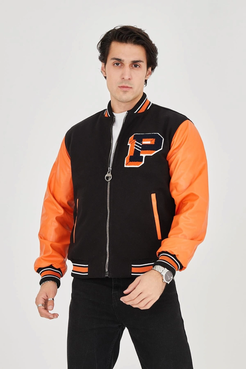 İçten Elyaf ve Astarlı Kolları Suni Deri Ceket - Turuncu -
