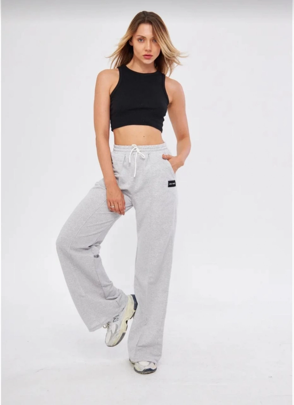 İki iplik Bol Paça Eşofman Pantalon - Gri