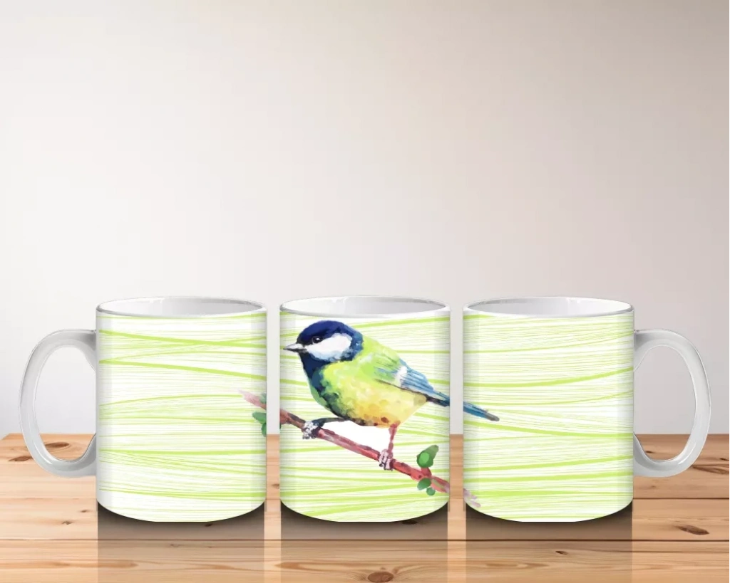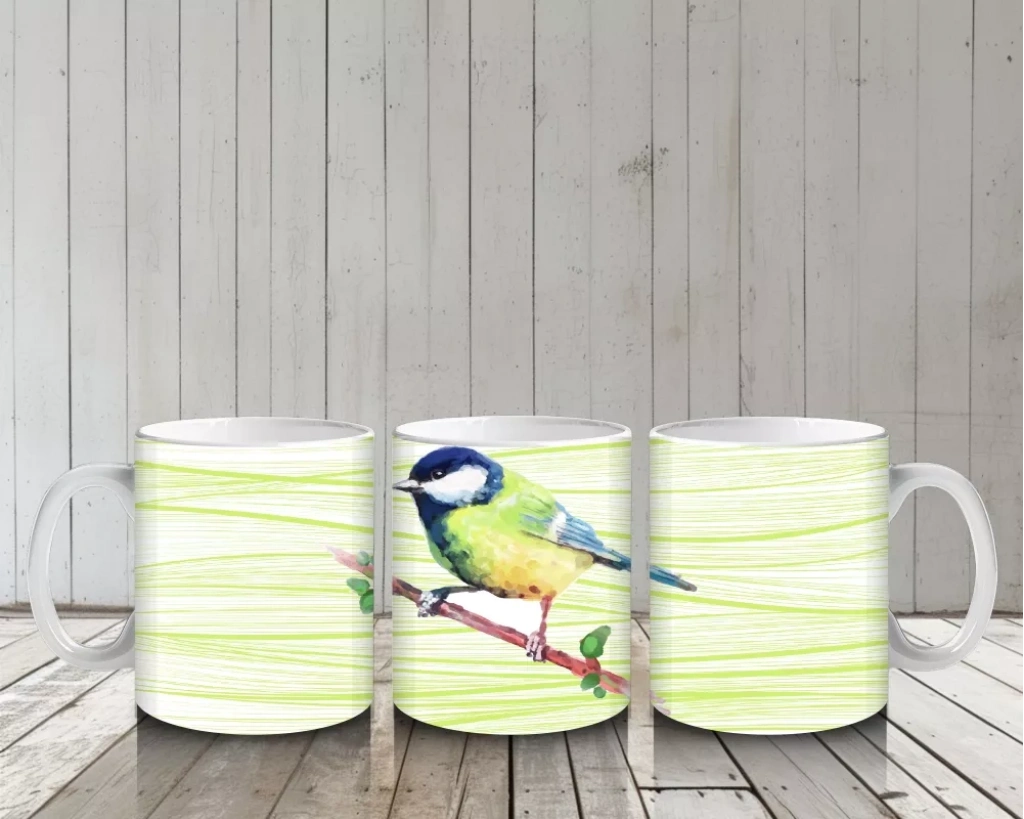 İnce Dallarda Oturan Renkli Kuş – Baskılı Kahve Kupası