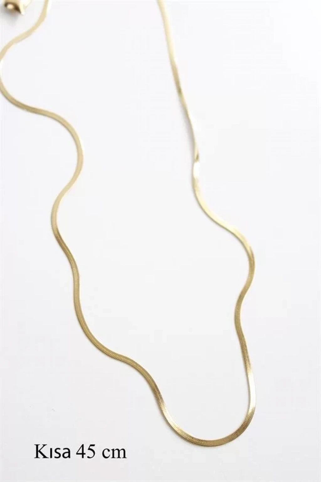 İnce İtalyan Zincir Çelik Kolye (45cm) - Altın