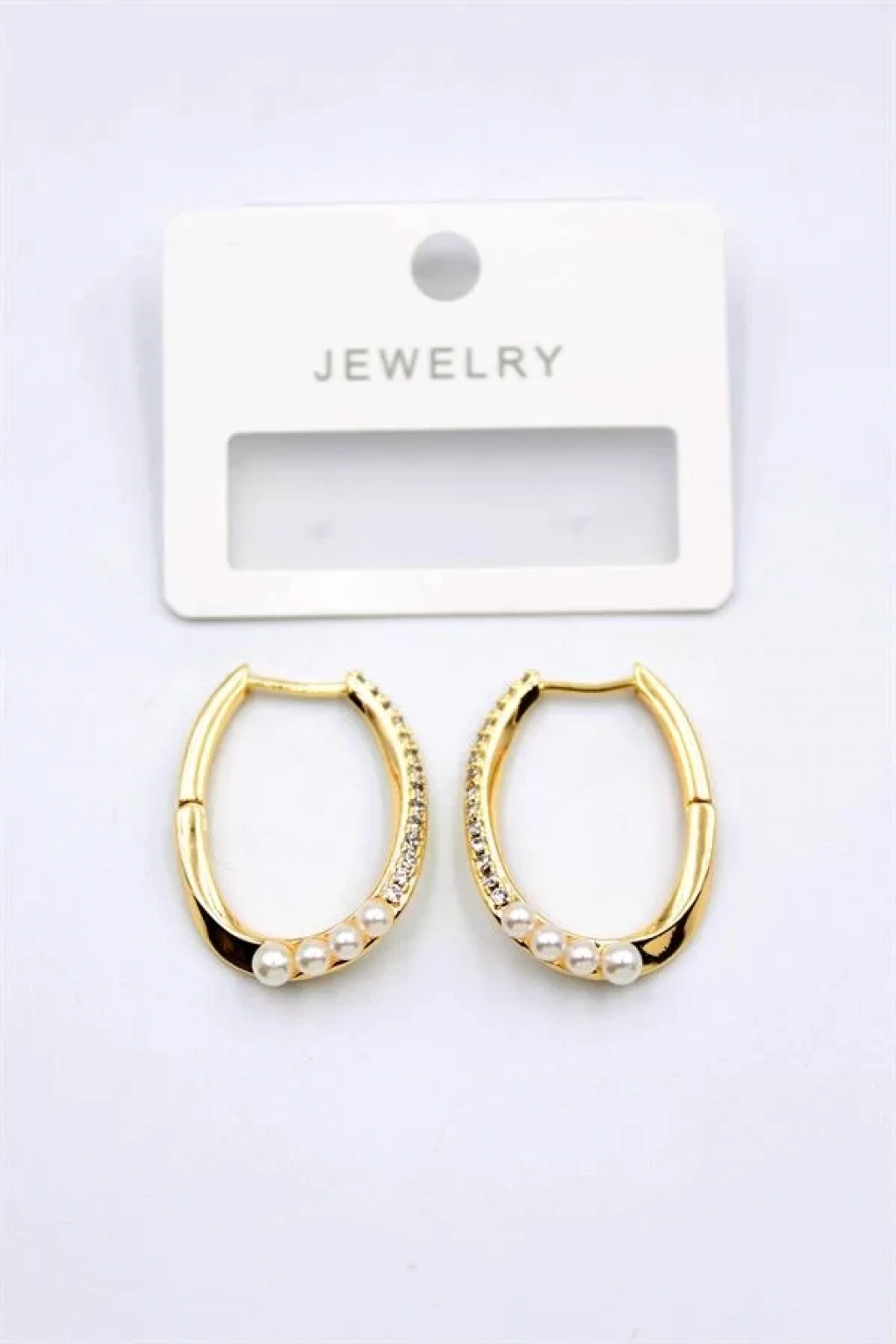 İncili Taşlı Halka Küpe - Altın