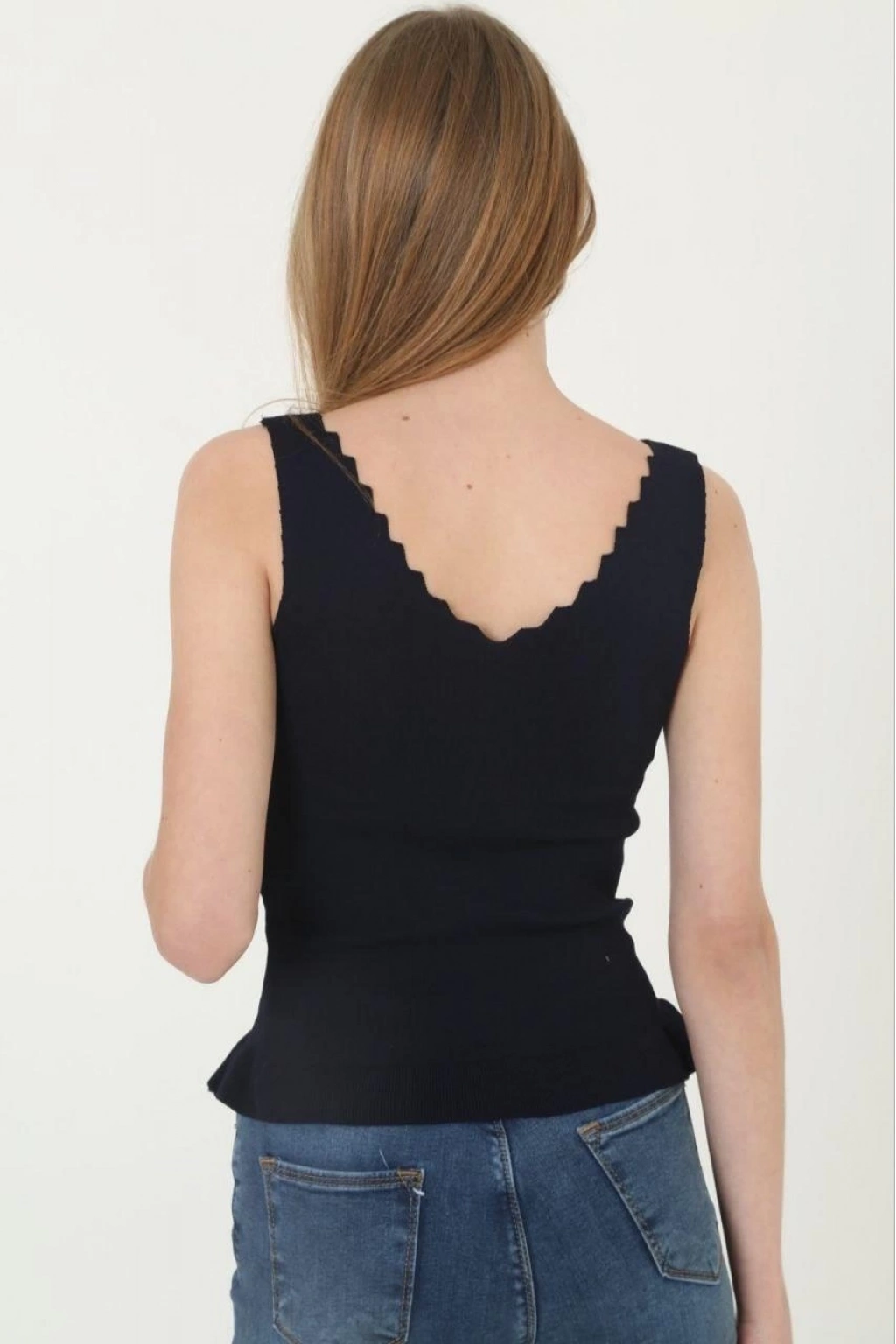Kadın V Yaka Fırfır Detay Crop - Siyah