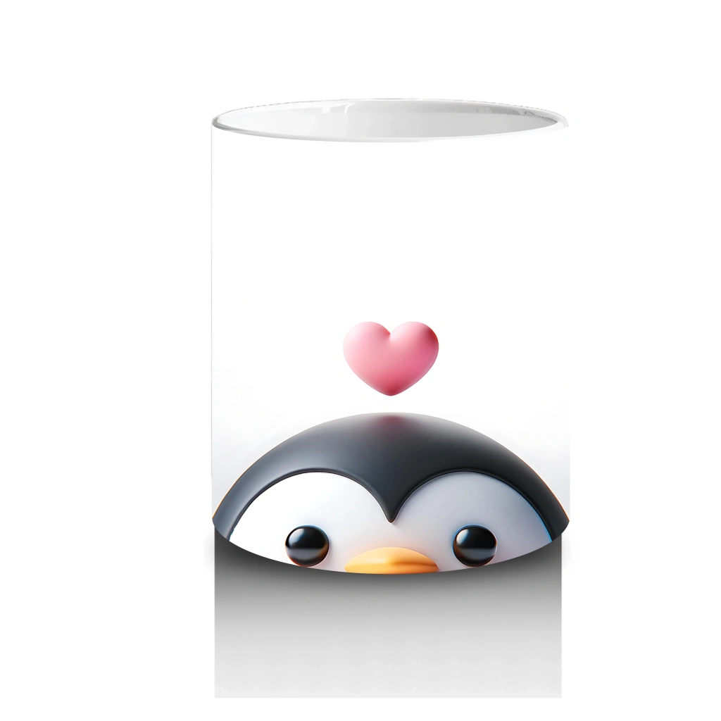 Elinde kalp şeklinde balonla poz veren bu şirin penguen, soğuklar içinde sıcacık duygular taşıyor. Romantik ve sevimli bir tasarım arayanlar için ideal bir kupa seçeneği.