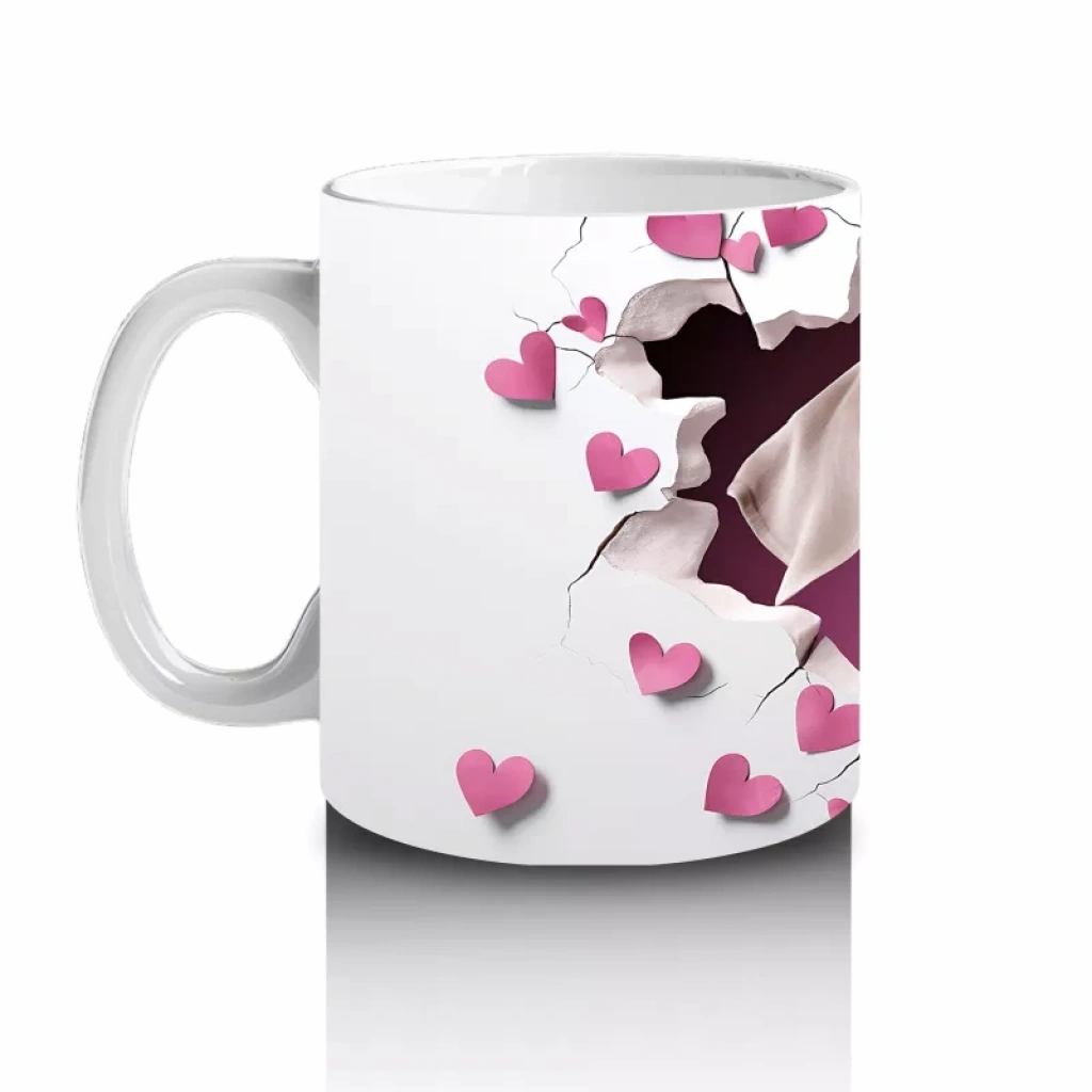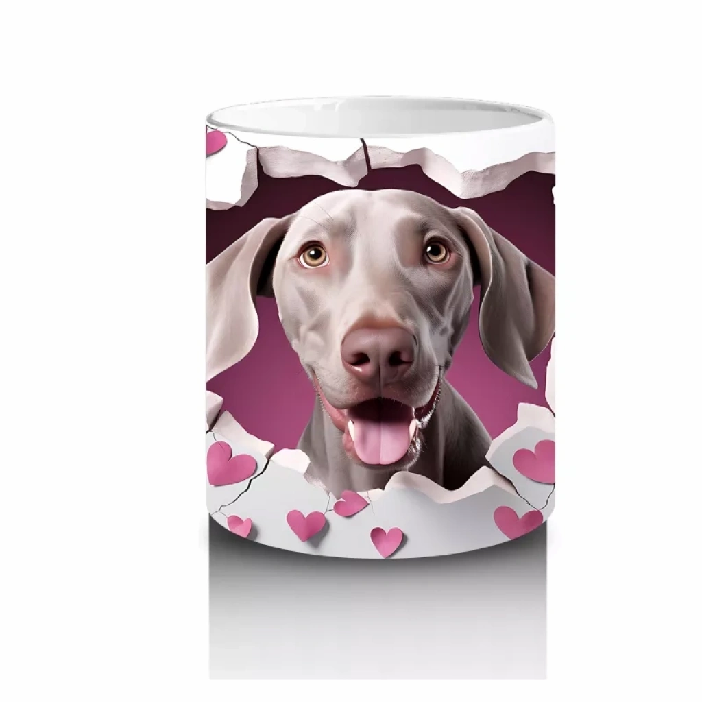 Kalp şeklindeki çatlağın içinden neşeyle bakan bu sevimli köpek, pembe kalplerin yarattığı sıcak atmosferle birleşerek özel anlara eşlik ediyor. Sevgi dolu tasarımıyla her yudumda gülümsetiyor.
