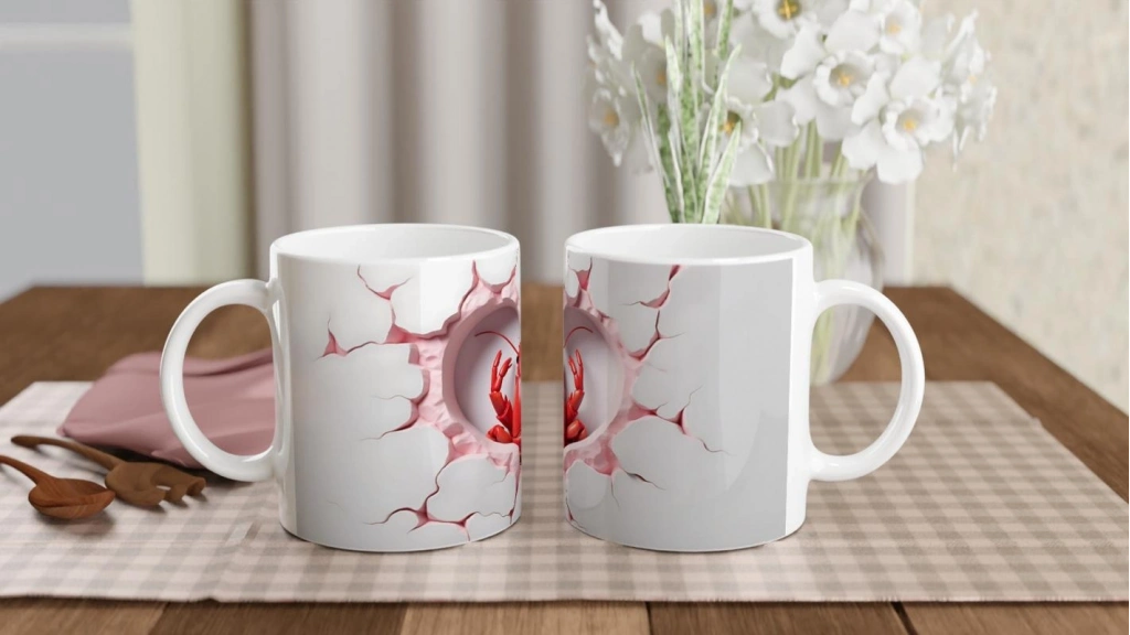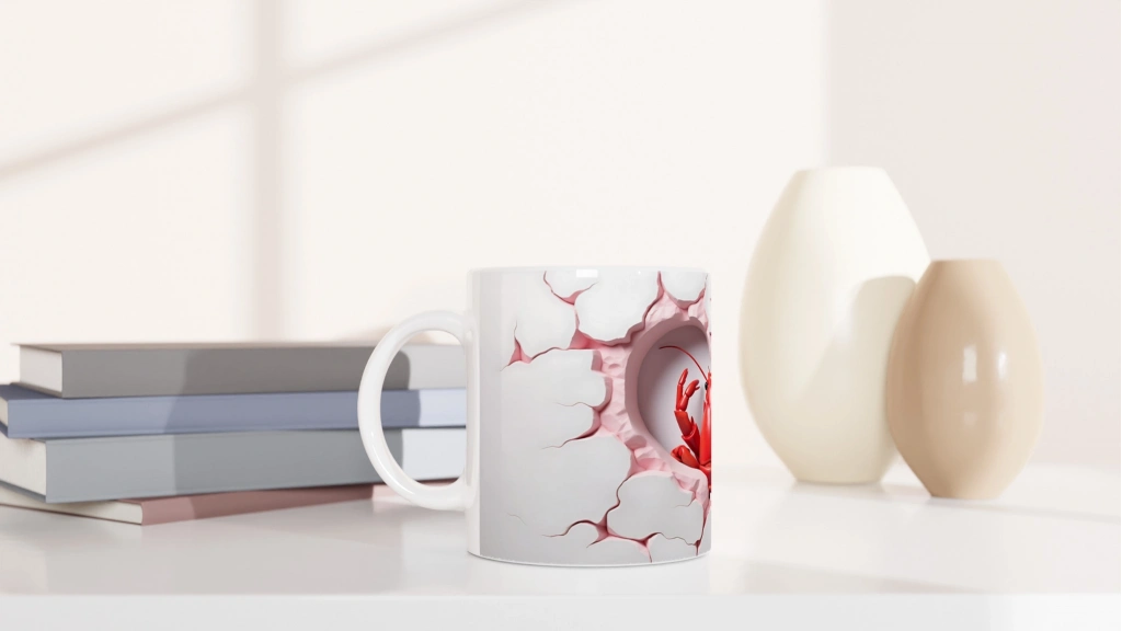 Kalp şeklinde kırılmış beyaz duvar efekti içerisinden çıkan kırmızı ıstakoz figürüyle tasarlanmış bu kupa, eğlenceli ve cesur tarzıyla fark yaratıyor. Hem deniz temalı ürünleri sevenlere hem de koleksiyonculara özel bir hediye alternatifi.