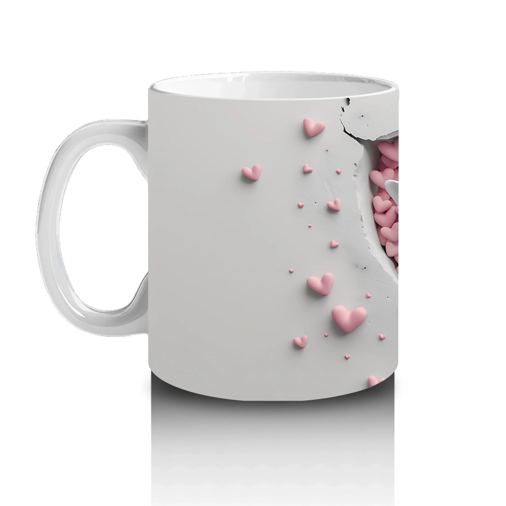 Kalp Desenli Fon Arasında Bakan İkiz Tavşan – Baskılı Kahve Kupası
