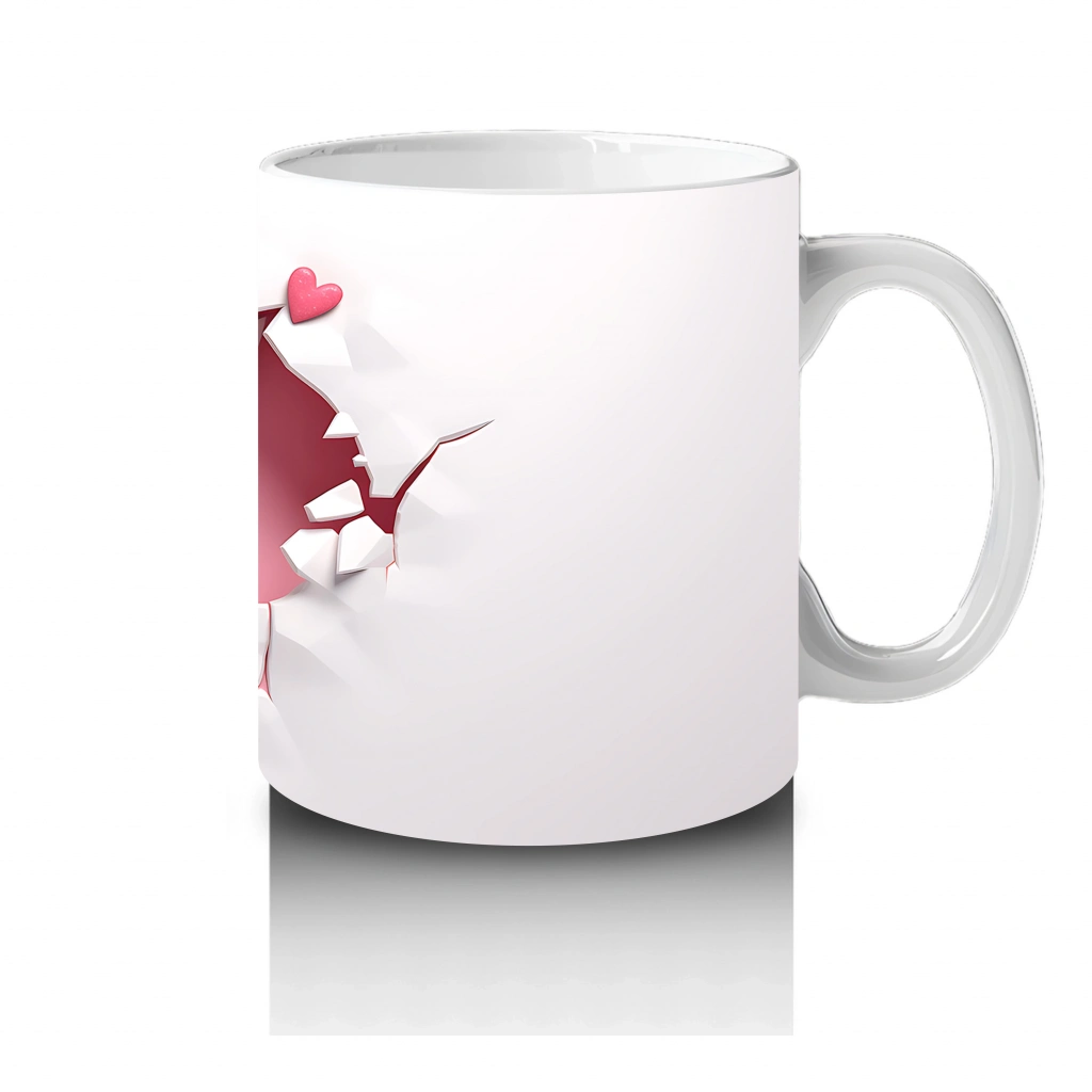 Kalp Figürlü Duvarı Delen Sevimli Keçi – Baskılı Kahve Kupası