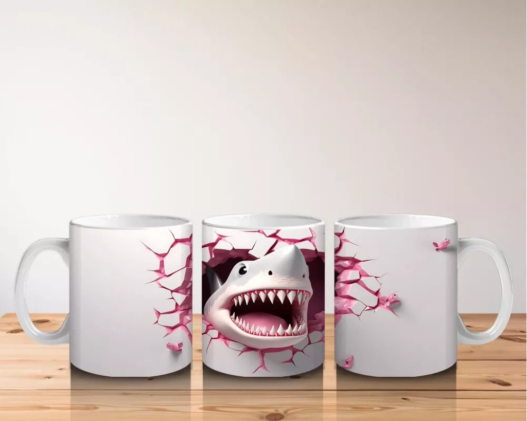 Tatlı bir gülümsemeyle kalp çatlağından bakan bu köpek balığı, hem eğlenceli hem de sıra dışı bir tasarım sunuyor. Mizahi kupalar sevenlere harika bir hediye!