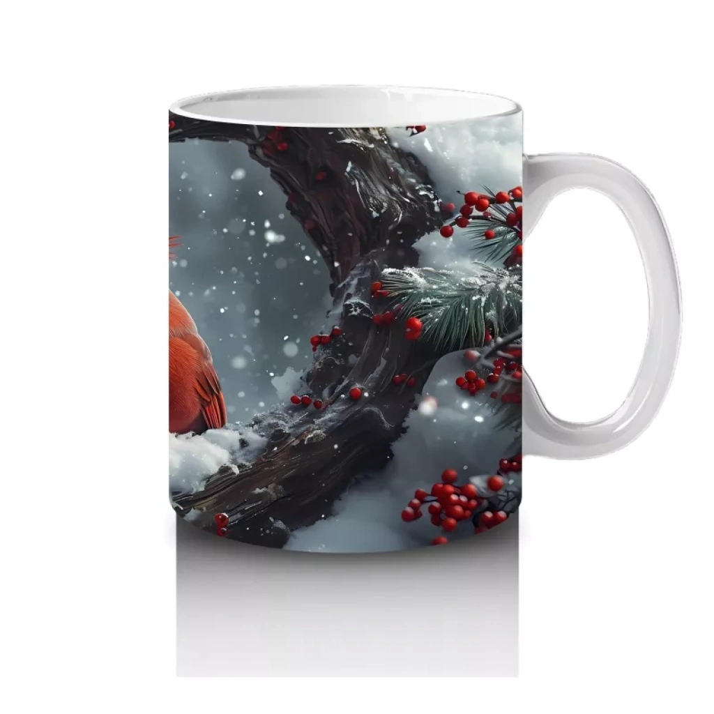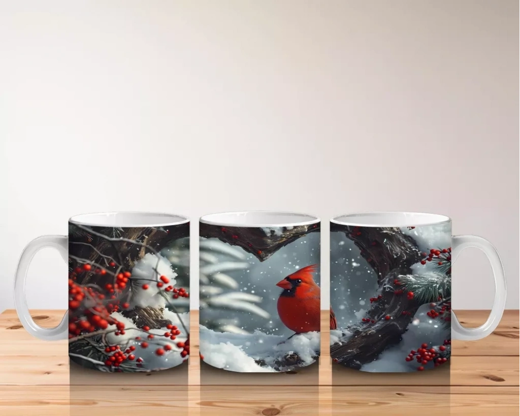 Kalp formundaki ağaç kovuğuna yerleşmiş kırmızı kardinal, sevgi ve doğayı buluşturan etkileyici bir sahne sunuyor. Romantik ve estetik detayları sevenler için anlamlı bir kupa modeli.