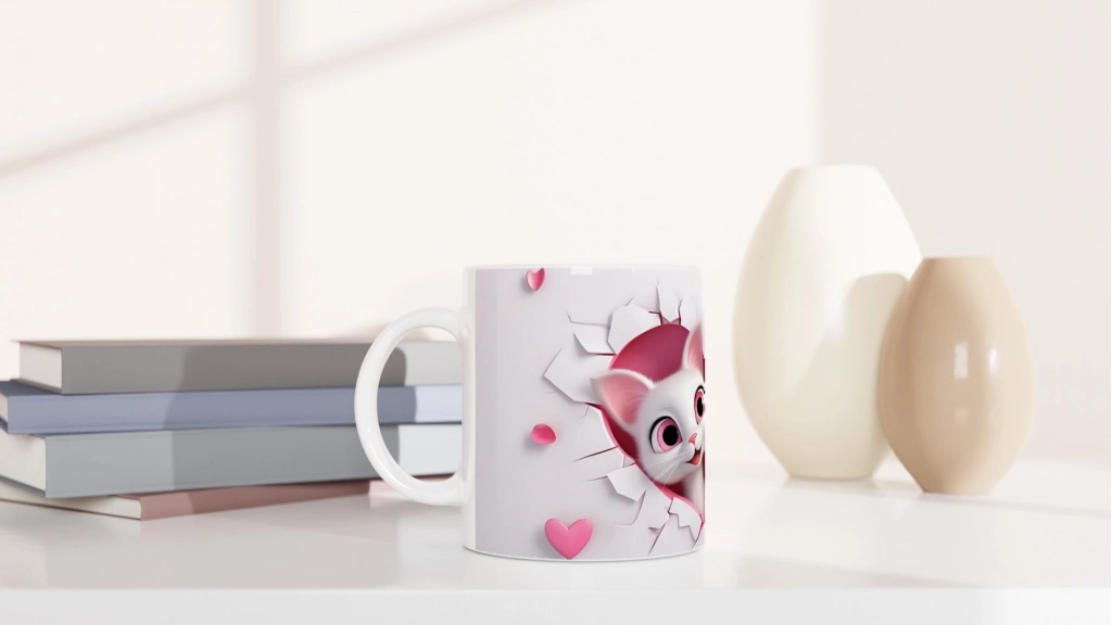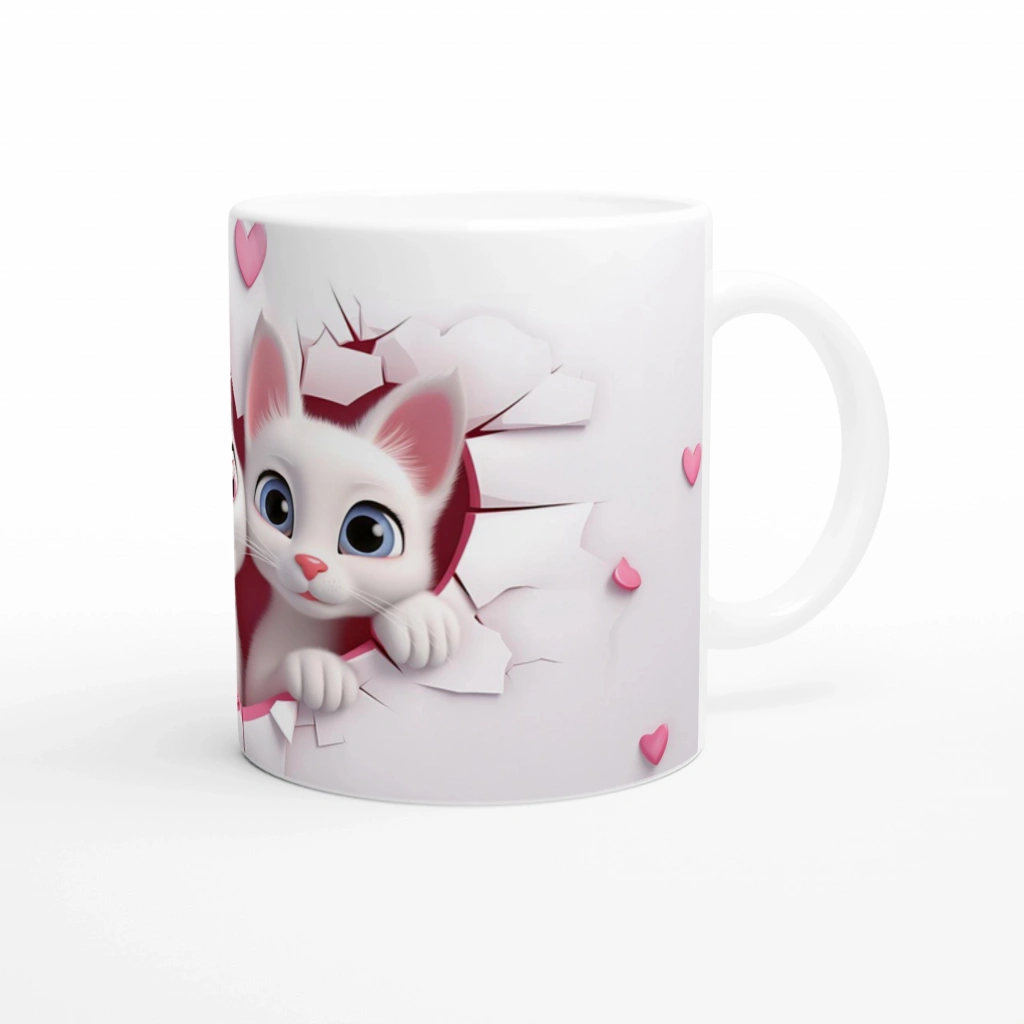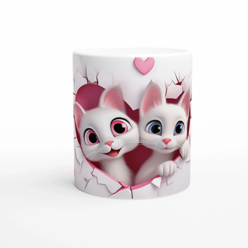Kalp Şeklindeki Çatlak Duvarın Ardından Bakan Tatlı Kediler Temalı Baskılı Kupa Bardak, sevimli bakışlara ve pembe detaylara sahip iki kediciğiyle, özellikle kedi severler için eşsiz bir tasarım sunar. Romantik bir hediye alternatifi olarak da öne çıkar.