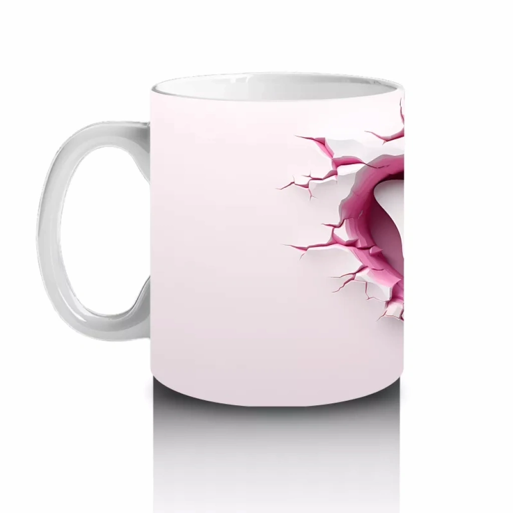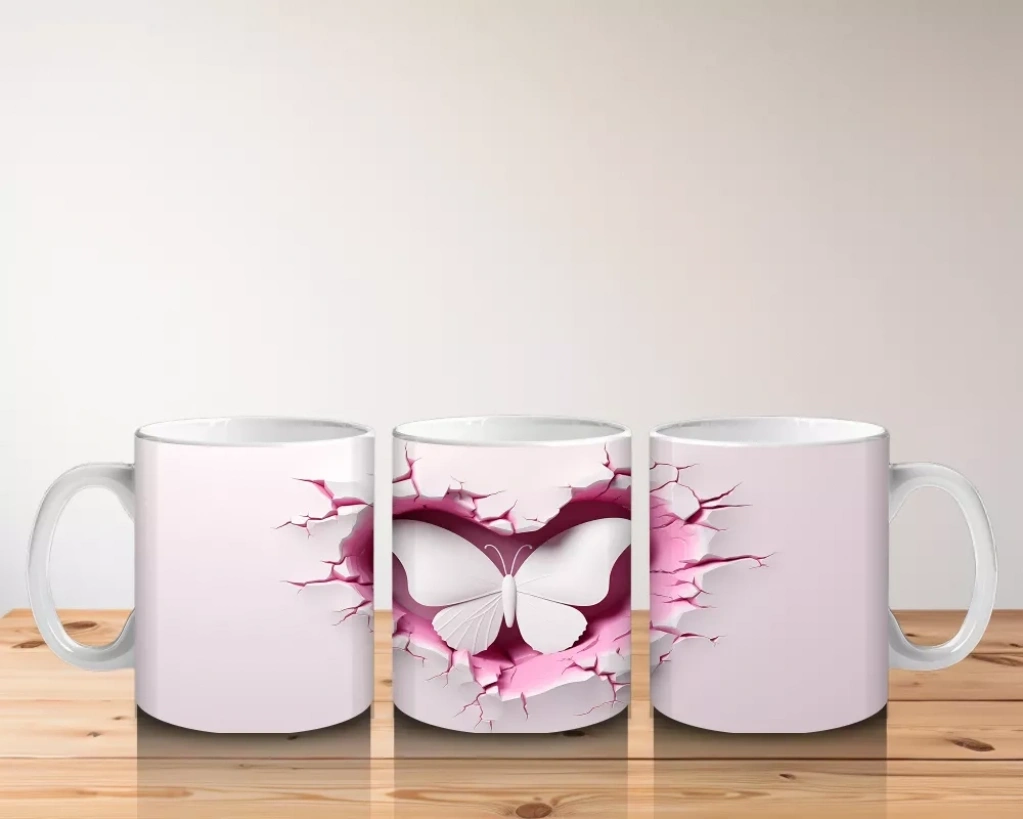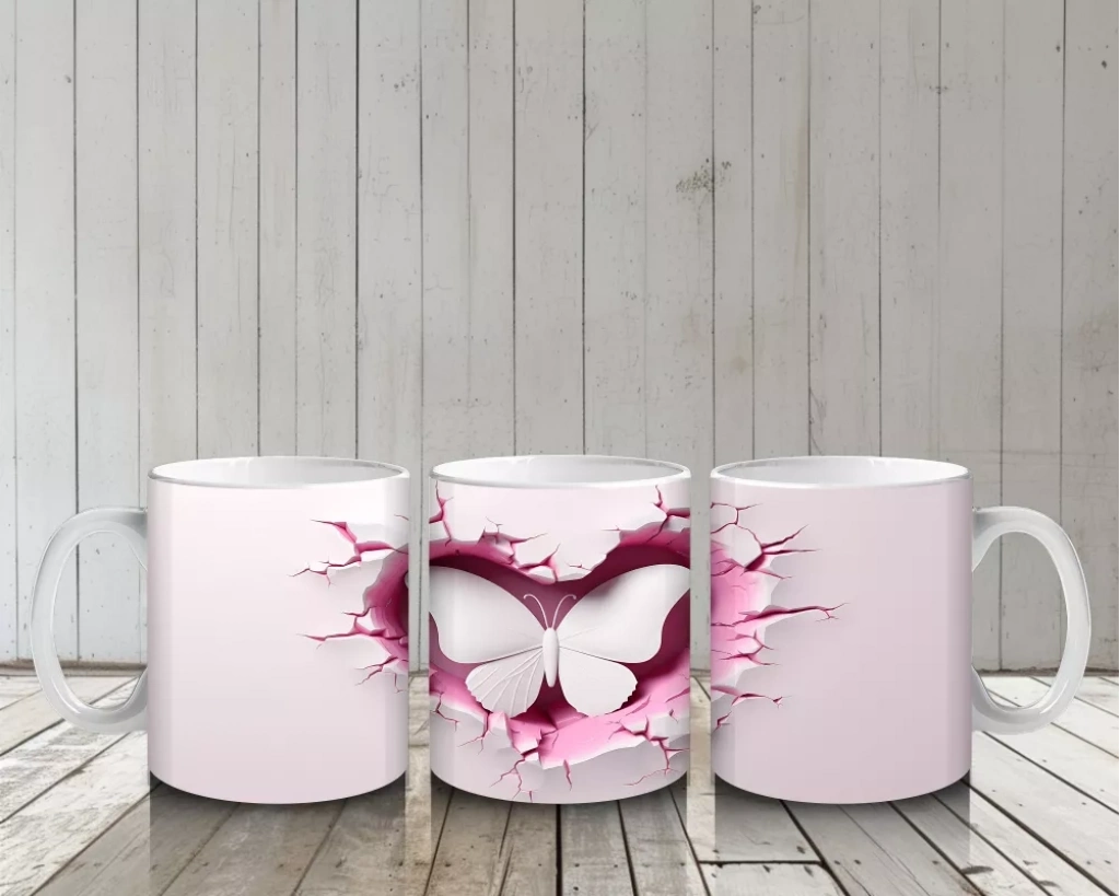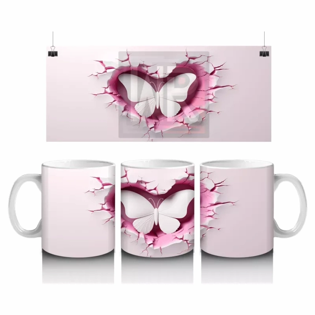 Kalp Şeklindeki Çatlak Zeminden Uçan Beyaz Kelebek – Baskılı Kahve Kupası