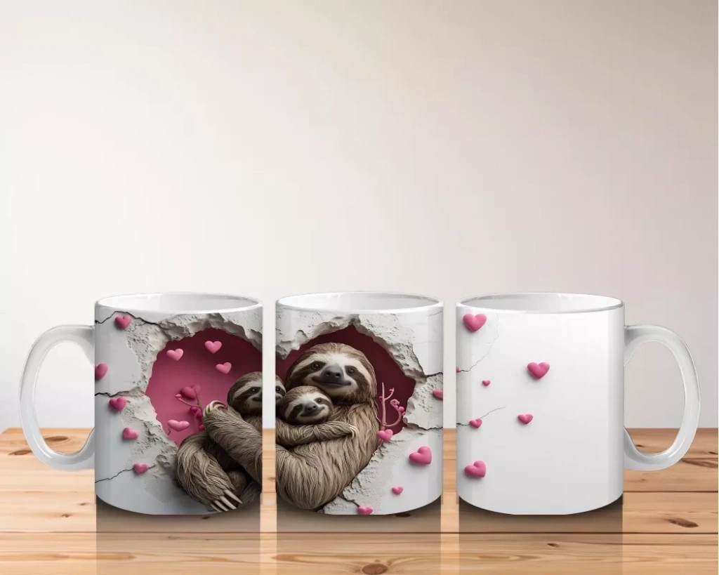 Kalp Tutan Şapkalı Sevimli Tembel Hayvan – Baskılı Kahve Kupası