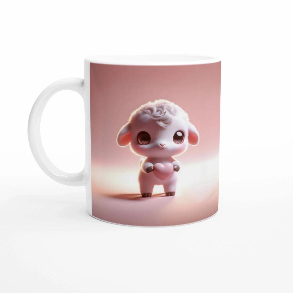 Kalp Tutan Sevimli Kuzu Temalı Baskılı Kupa Bardak