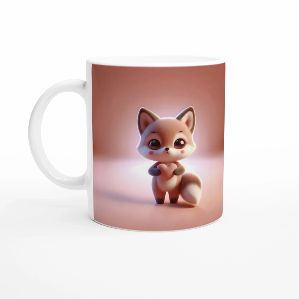 Kalp Tutan Sevimli Tilki Temalı Baskılı Kupa Bardak