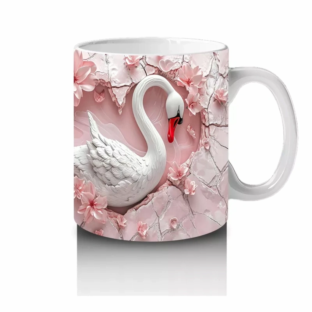 Kalp şeklinde damlaların altında baş başa duran iki kuğu, romantizmin zarif sembolü olarak öne çıkıyor. Aşk dolu anları kupasında yaşamak isteyenler için duygu yüklü bir tasarım.