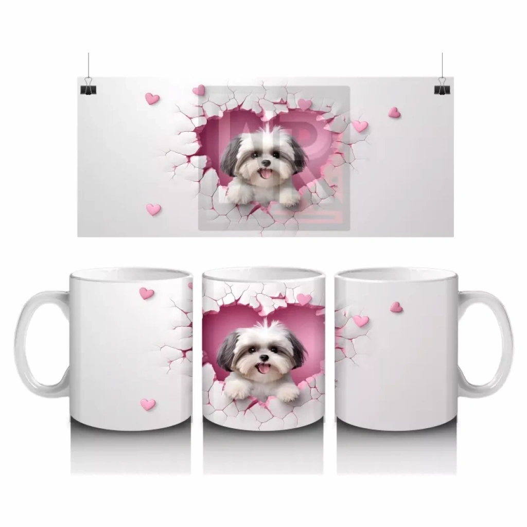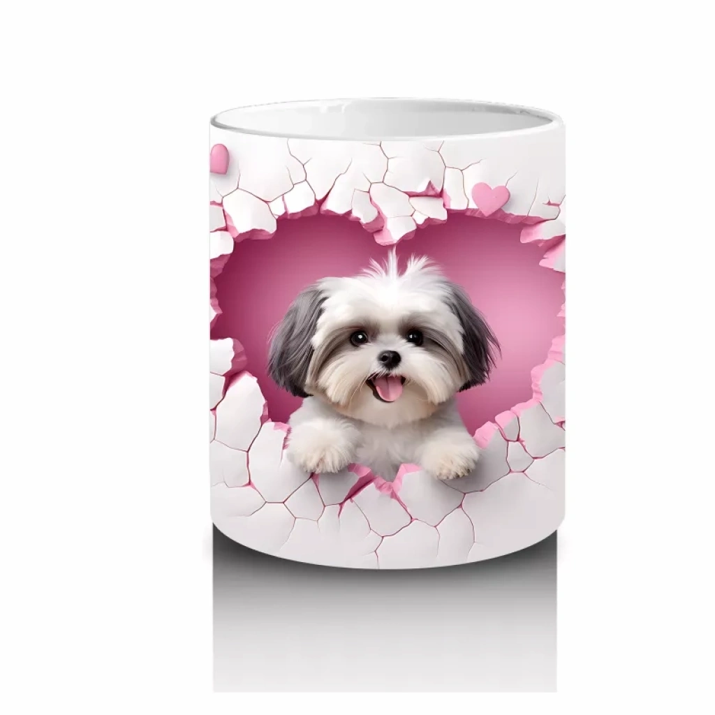 Kalplerle bezeli çatlak bir fonda beliren bembeyaz köpek, saflığı ve sevgiyi bir arada yansıtıyor. Sevdiklerinize vereceğiniz içten bir hediye için zarif ve sevimli bir alternatif.