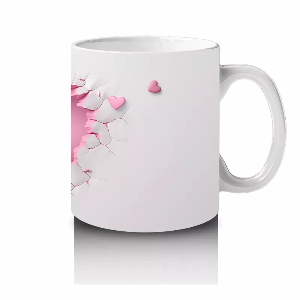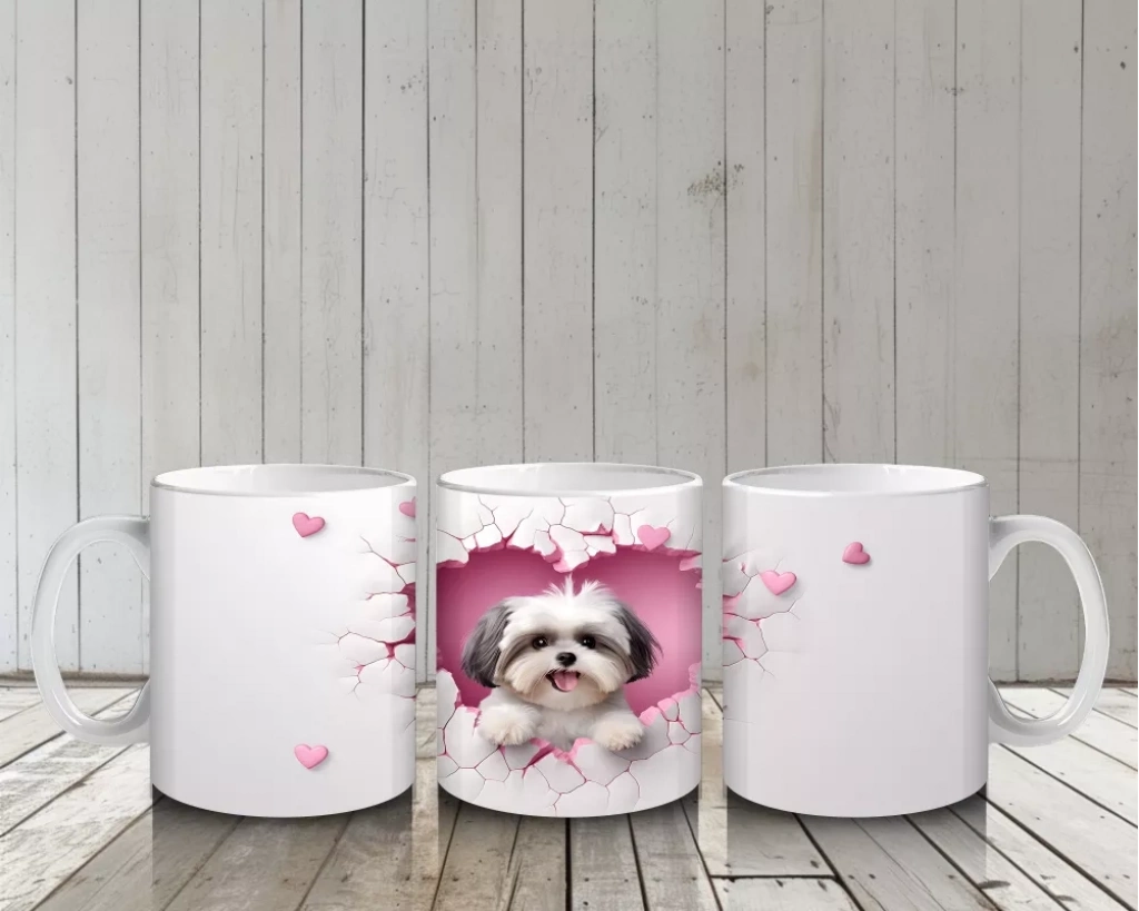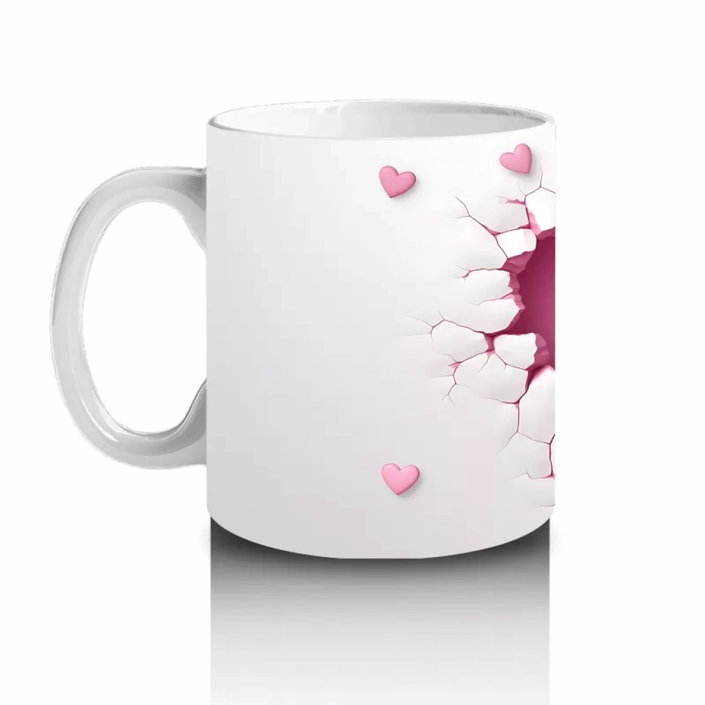 Kalplerle Süslenmiş Çatlakta Bembeyaz Köpek – Baskılı Kahve Kupası