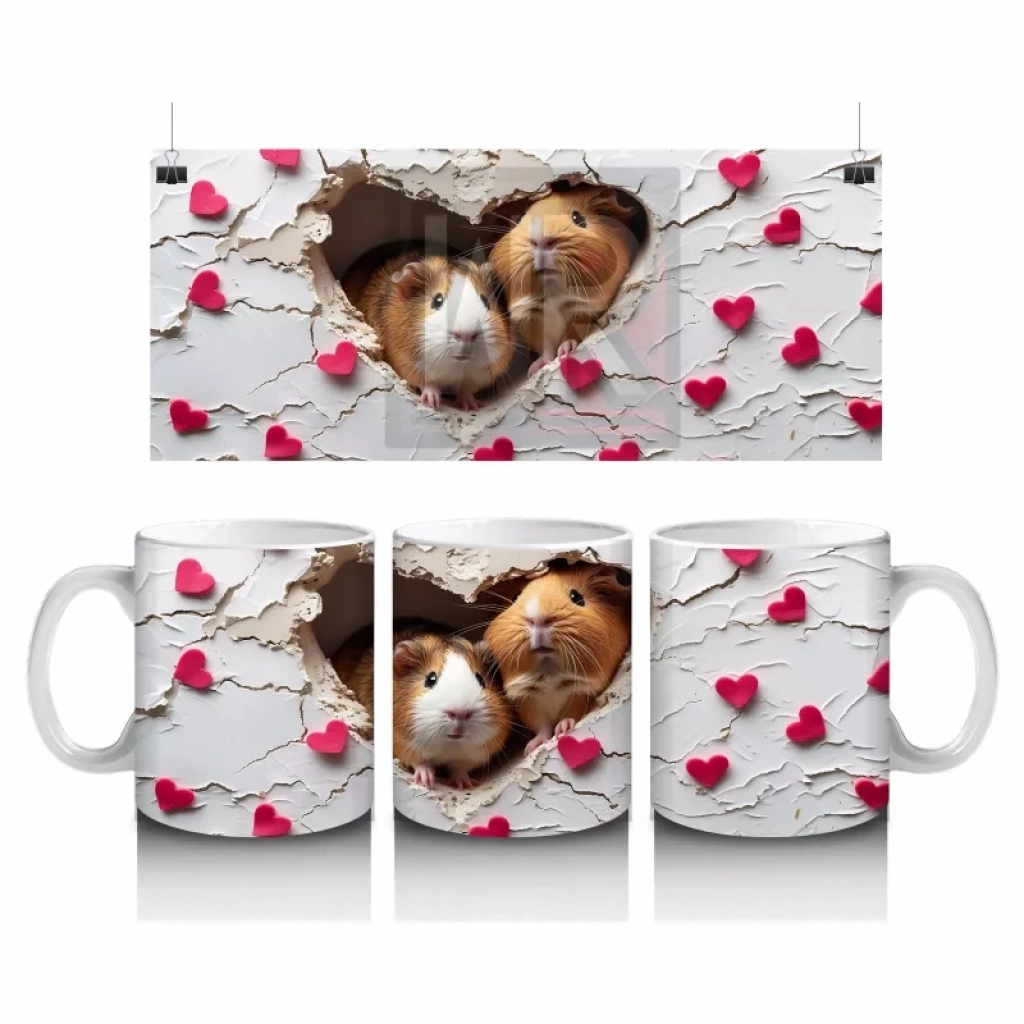 Kalpli fon üzerinde duran bu minik kobaylar, sadelikleriyle kalpleri fethediyor. Sevimli kemirgen dostlarını sevenler için hem tatlı hem özgün bir kupa tasarımı.
